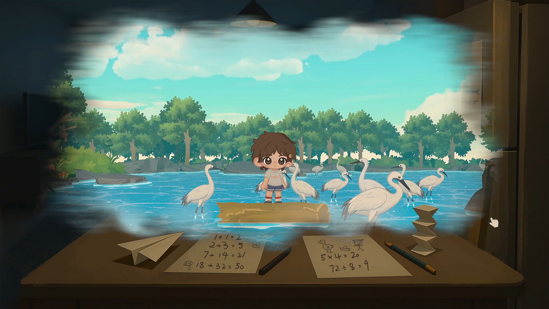 Actions in the real world, such as folding, cutting, and stitching, influence the journey of the paper figure in the fantasy world, gradually guiding the protagonist toward emotional repair and self-growth.