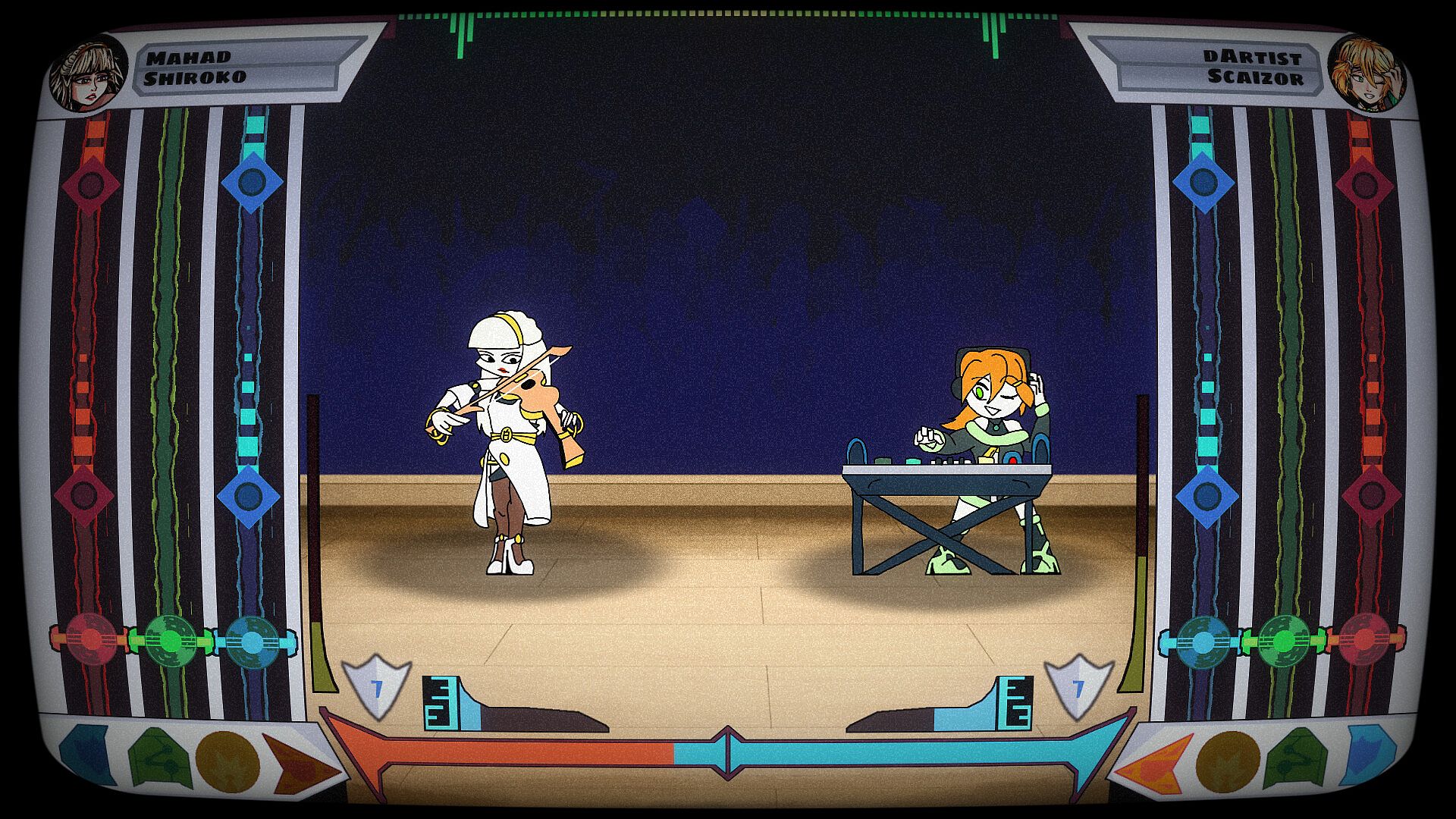 Rhythm Brawl features a cast of six distinct anime characters, each bringing a unique playstyle to the rhythm battles. For instance, KneoX, a stoic half-spider fighter, relies on aggressive special moves that overwhelm opponents with rapid note bursts.