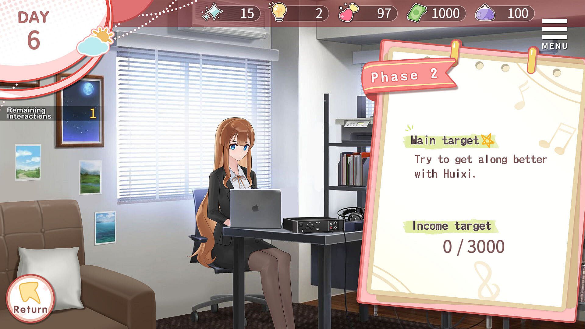 There are four daily sessions where players can choose from various rooms in the house to explore, take actions, and find and interact with Huixi.