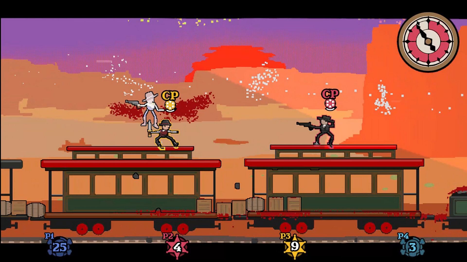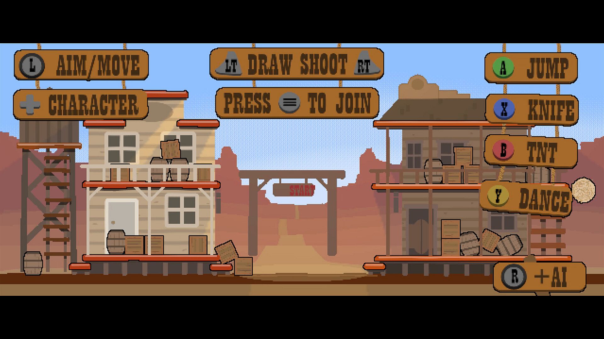 Set in a classic spaghetti western theme and tumbleweed backdrops, Ricochet Rodeo features pixel-rendered art that produces a chunky low-res feel with bullet trails and bits of debris.