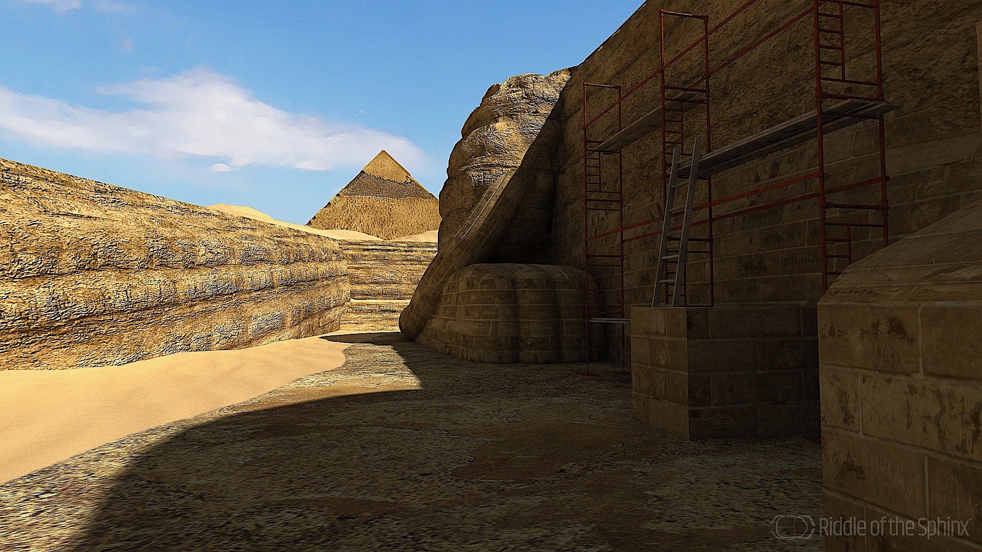 Riddle of the Sphinx⢠The Awakening is truly an epic ancient Egyptian adventure featuring exploration in and around highly accurate 3d replicas of the Giza Sphinx and Great Pyramid of Cheops (aka, Khufu). While you start out at the Sphinx and can examine the inside of the Great Pyramid as it exists today, this is only the beginning of a long journey that reveals and solves many real-life archaeological mysteries.