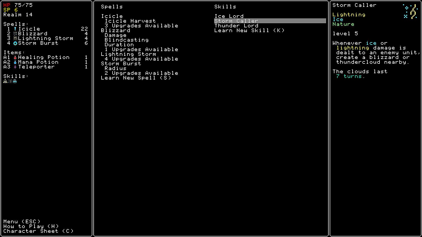 - Open ended character advancement with deep synergies and spell interactions