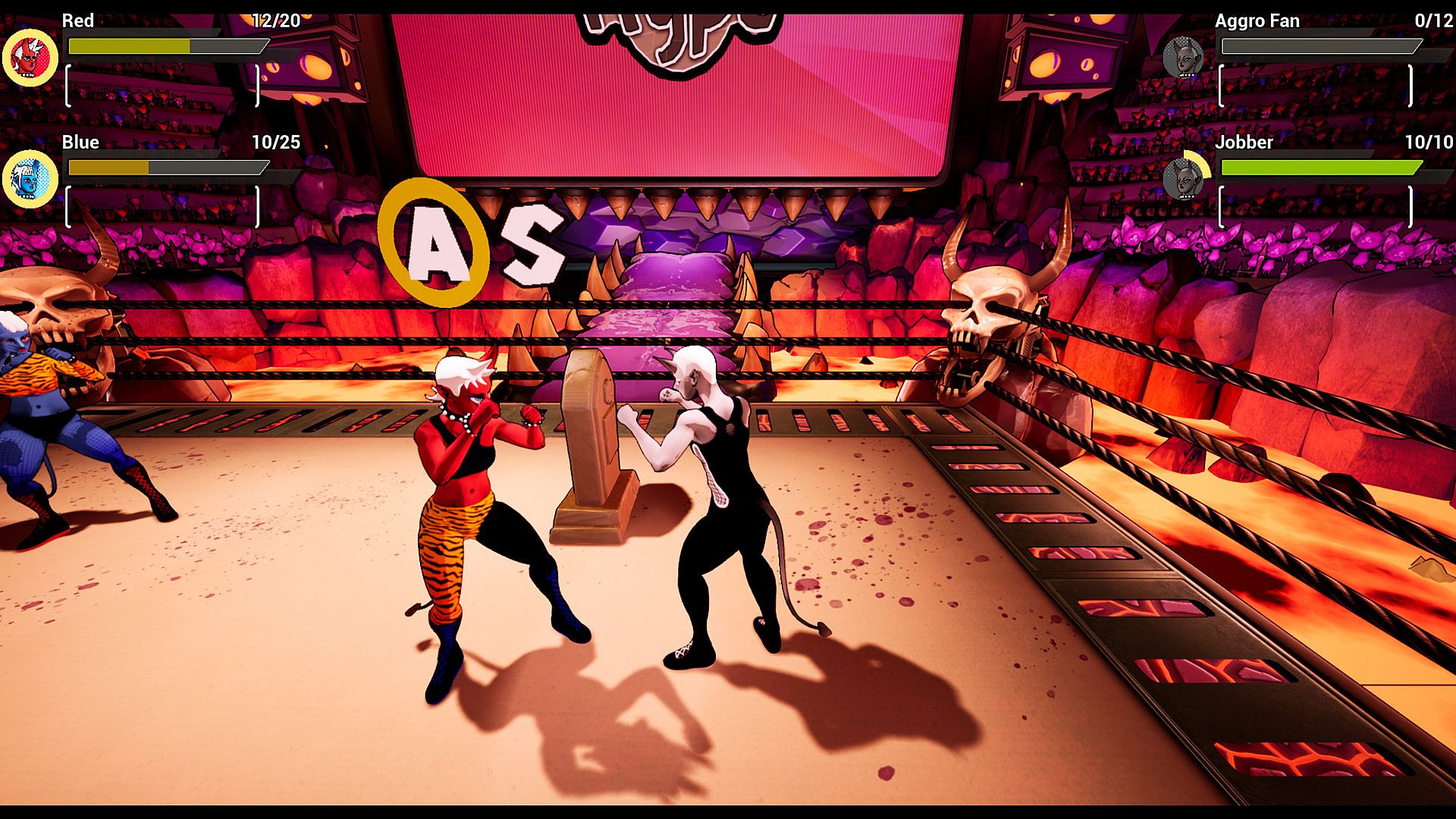 Rings of Hell is an RPG about rivalries, friendship, forgiveness, and most important of all - wrestling. Take control of famous wrestling partners-turned-enemies Red and Blue in a series of tornado matches as they fight their way through Wrestle Hell on their quest to become champions of the underworld. Utilize a swathe of tenacious items, unique attacks, and crowd hyping abilities in Active-Time-Battle combat. When you’re not fighting in combat you’ll be doing some dirty work for Wrestle Hell’s unfortunate denizens.
