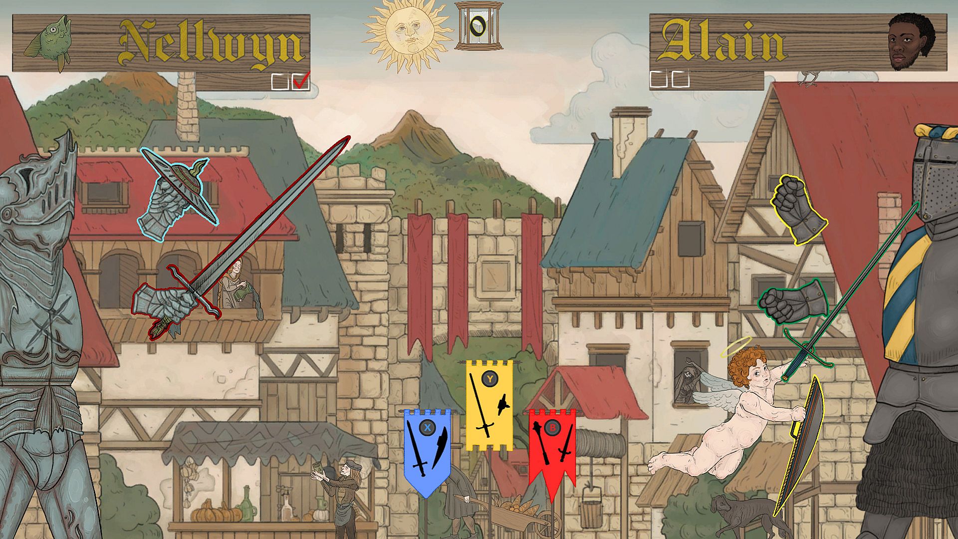 Control weapons, not characters! Choose from a veritable arsenal of primary offense and secondary defense weapons in sword and board-style combat. Each player directly controls a weapon with unique abilities, strengths, and weaknesses!If you’re a sword... prepare to stab or be stabbed.