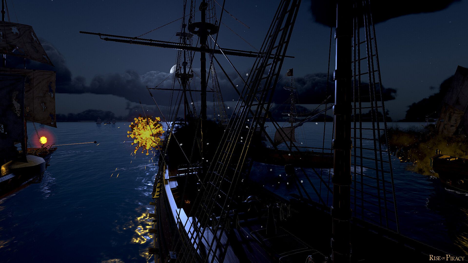 Rise of Piracy focuses heavily on progression and growth. In your campaign, you will first be given a small ship and a handful of coin. Complete missions and find treasure to build your economic strength and relations with the other factions. You can also choose to fight, boarding or sinking other vessels for loot. Build up your fleet of ships and their crews to take on the most challenging tasks such as capture islands of various strength and composition. Defeating large colonial fleets in grand scale naval warfare. Hunt pirates or long lost treasures. Uncovering mysterious lands filled with dangers as you go.
