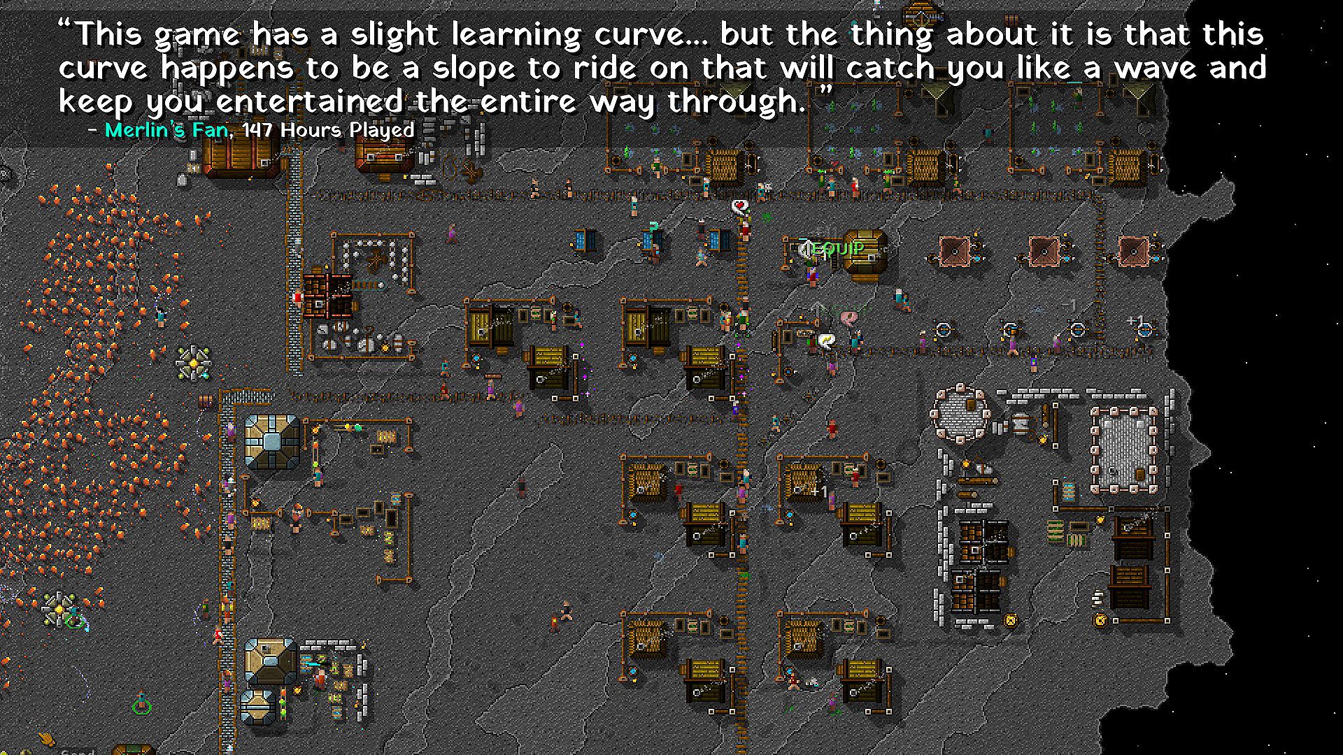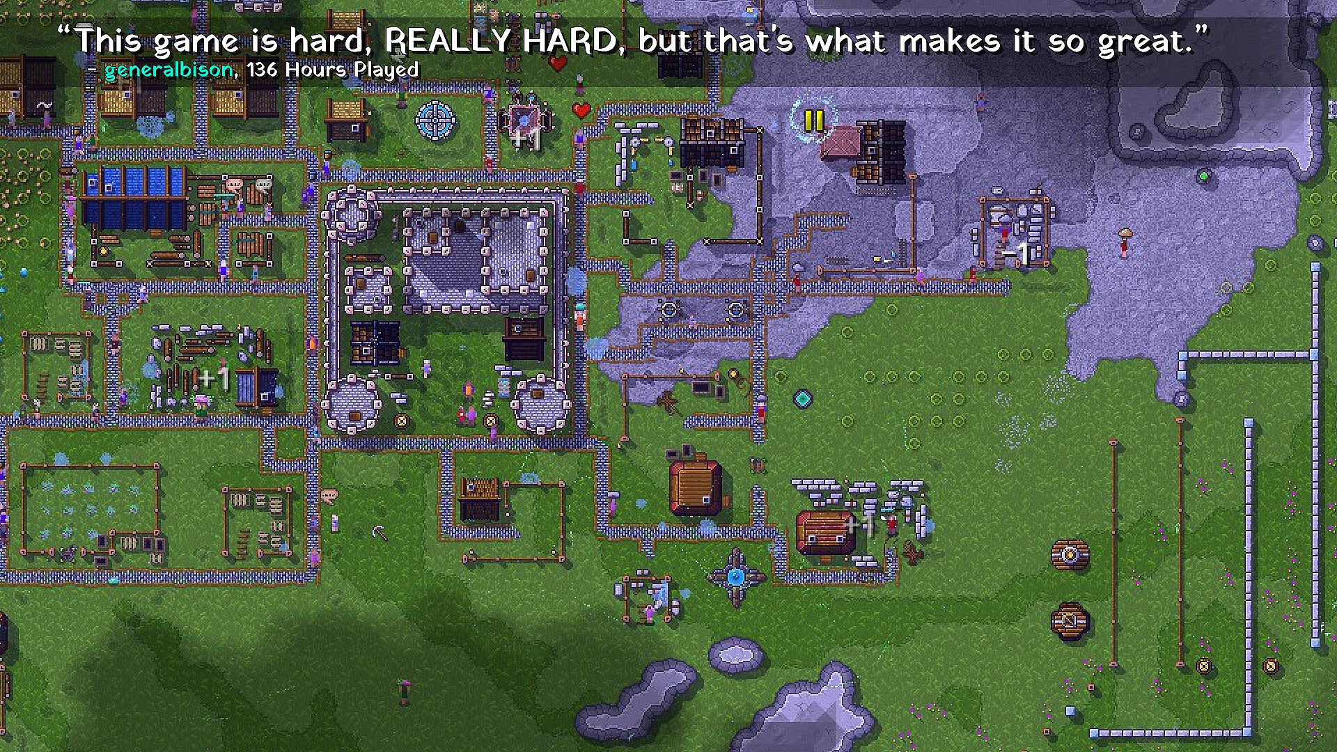 A major part of the game is village management, and trying to discover new and creative ways to use the tools at your disposal to keep yourself alive as long as possible while you defend your village at night from the raging hoard of monsters, and try to expand in the day time. In this game, you will lose frequently, but with every failure you learn a little bit more about how to survive and apply that knowledge to your next attempt.