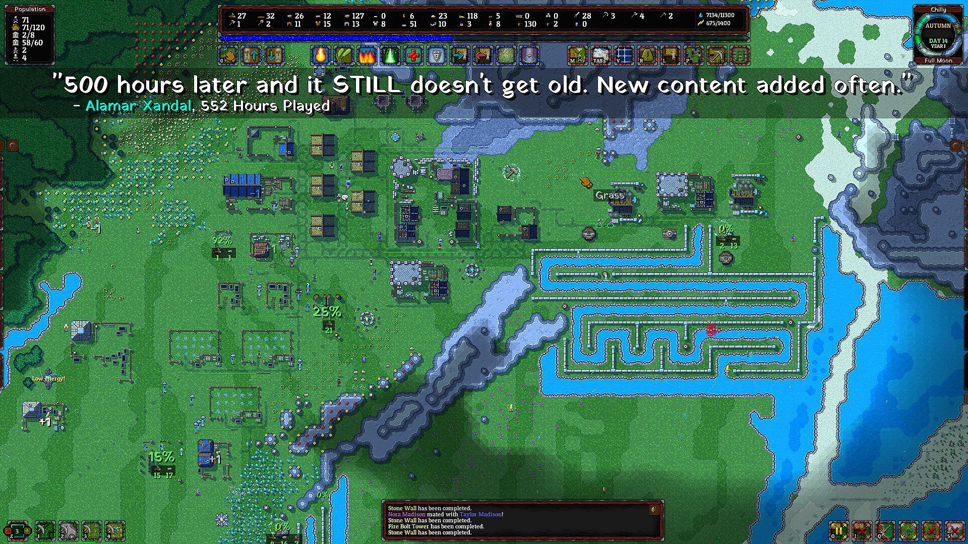Traditional is very similar to Survival, but it's balanced much like a traditional village simulator with some godlike and RTS elements sprinkled on top. The monster spawn rates are much lower, and the main focus is keeping your village happy and fed. It's a very easy mode, designed for casual players, or players just wanting to experiment.