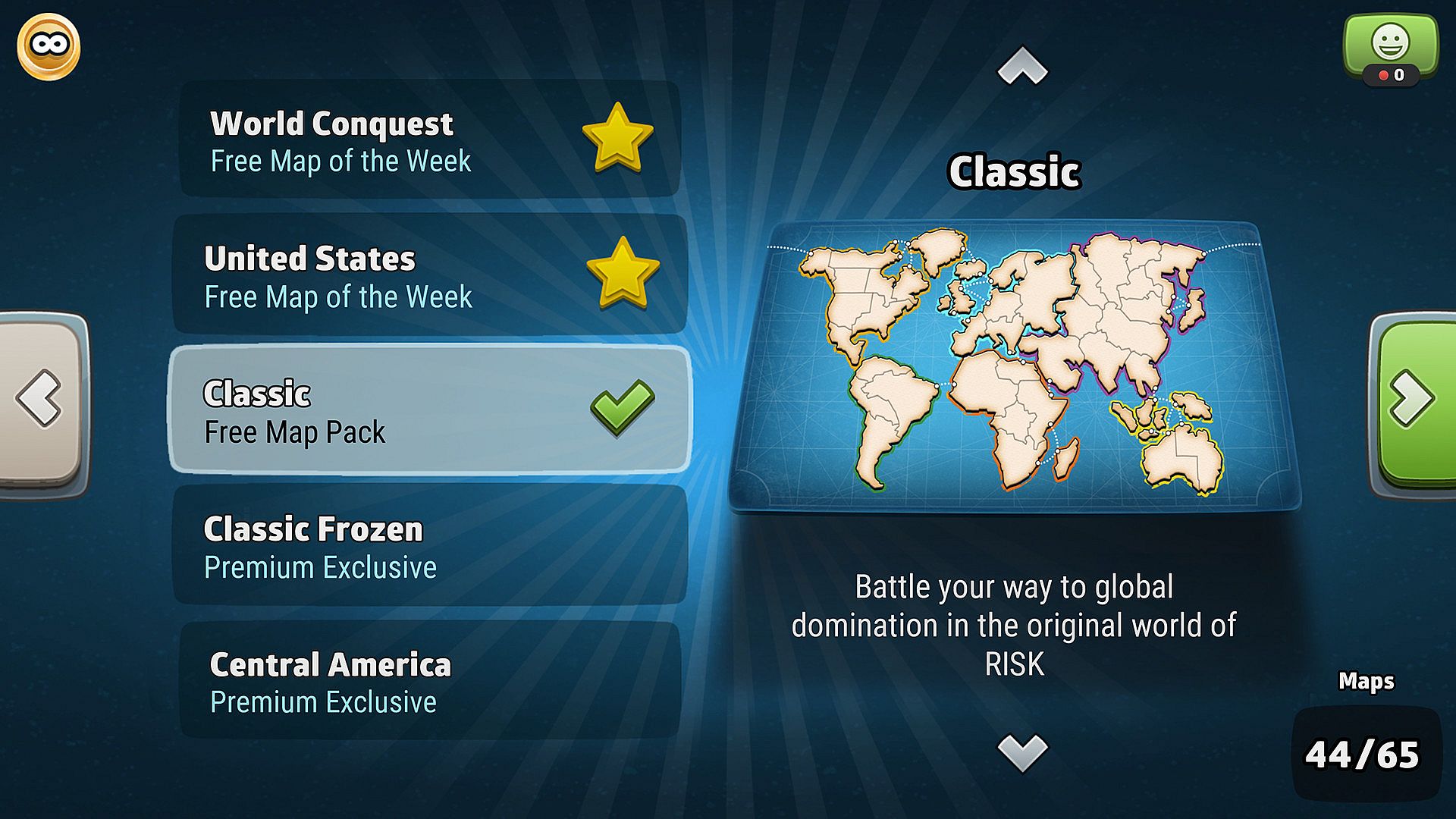 Battle across an expansive selection of maps, from real-world terrains like Europe and Asia to ancient battlefields and outer space. Each battlefield introduces new pathways to victory that challenge you to employ different strategies, keeping every online match fresh and unpredictable. The classic map is 42 territories. Our custom maps range in size from ~20 territories for quick wars to advanced maps with 90+ territories for more drawn out battles.