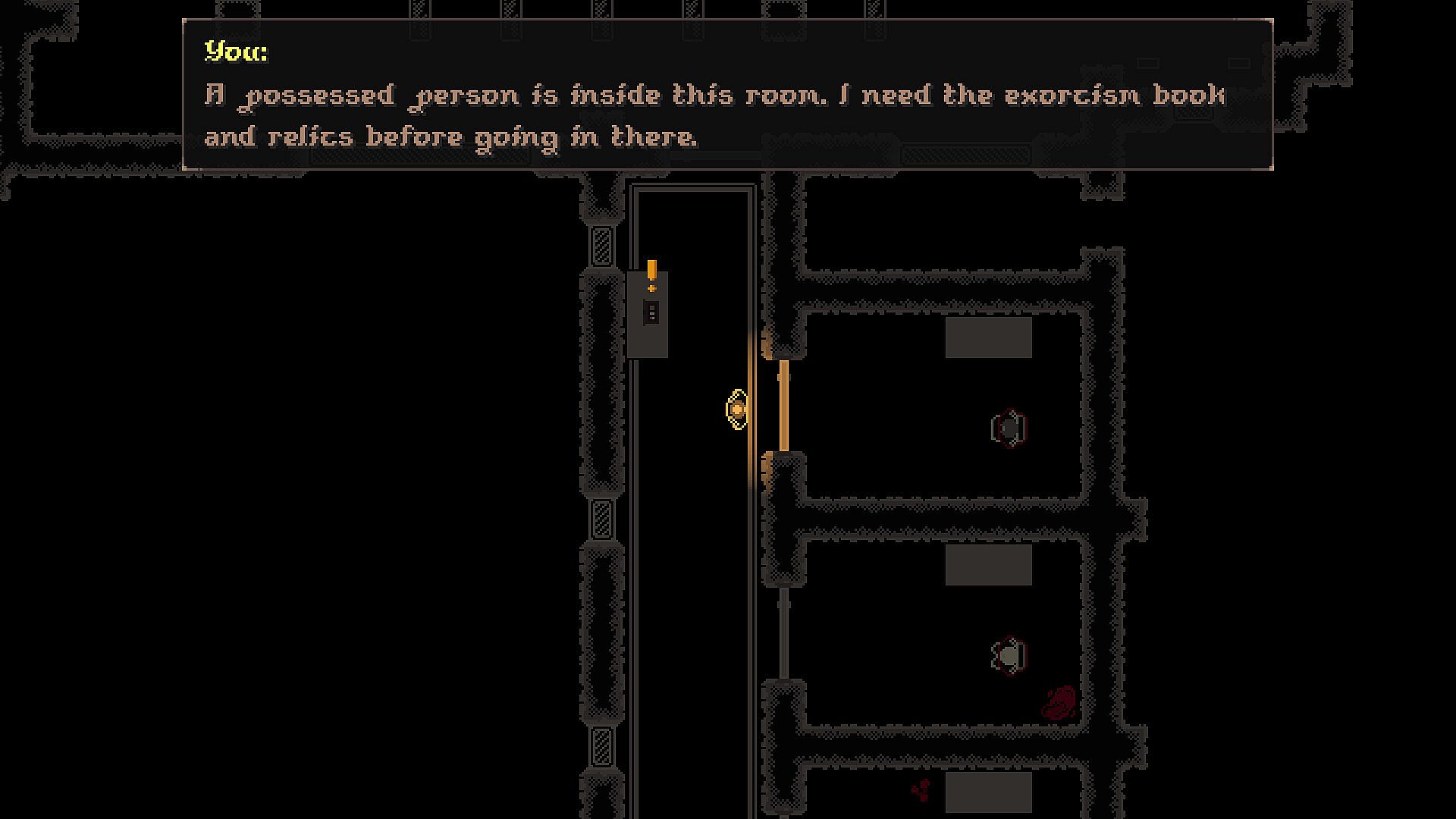 Demonic possessions are increasing all over the land. You are a priest being trained by the church to perform exorcisms. Equipped with your Exorcism Book and a case of Holy Relics you are sent to aid the afflicted population.