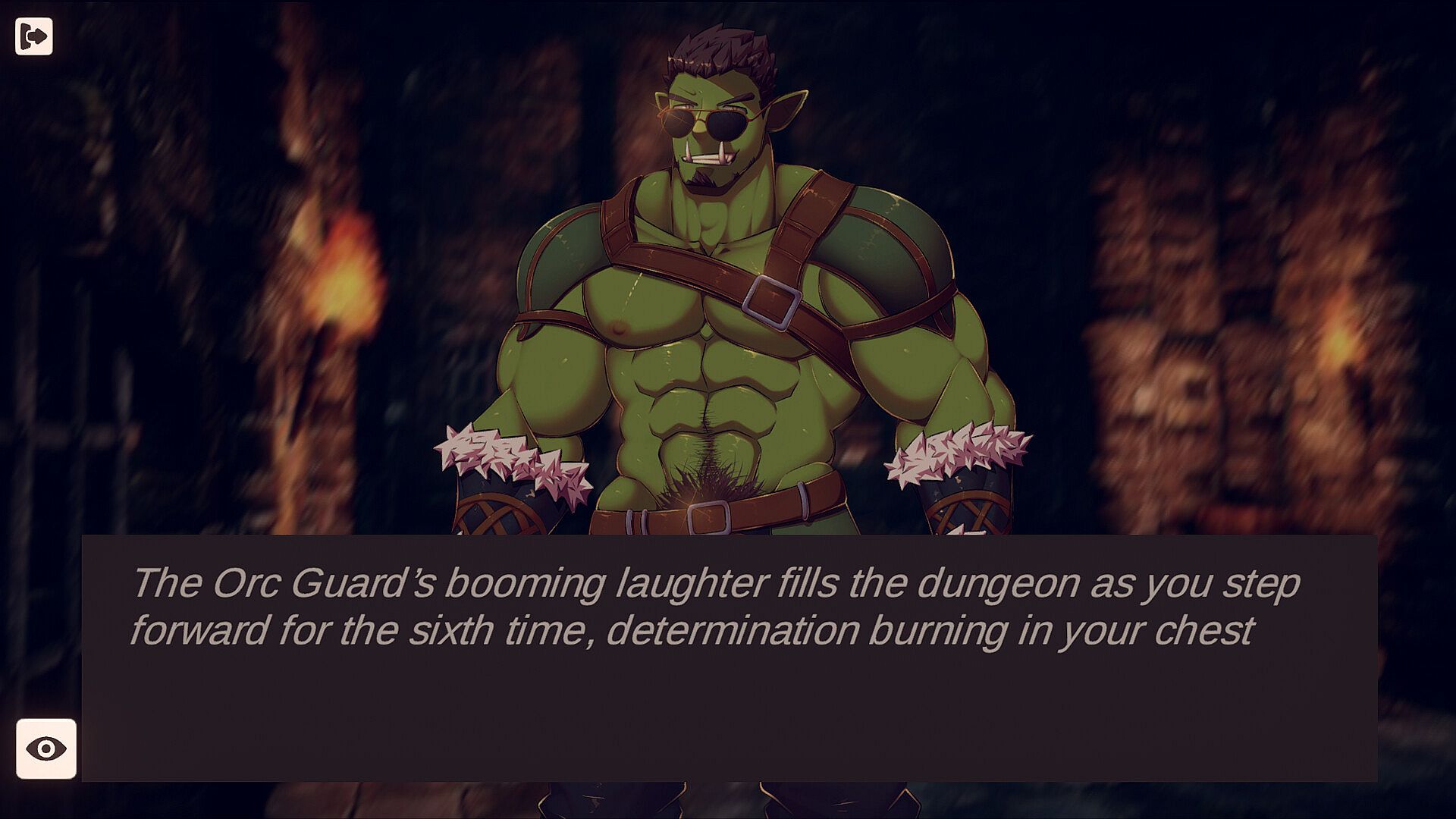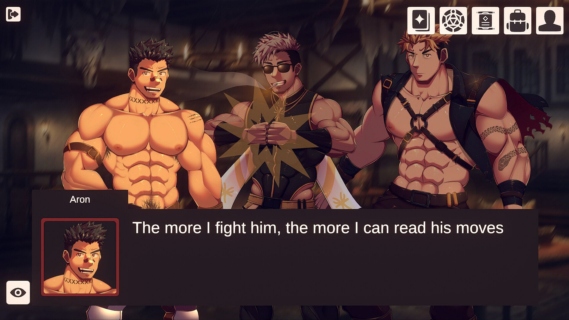 The game’s story is told through a visual novel style structure, packed with character art and homoerotic storylines that pull you straight into a world of domination, spunk, and erotic tension. You’ll meet a full cast of muscular men, from rugged orcs and bandits to cocky twunks and alphas. Each enemy has their own intense personalities and ways of asserting control. Whether you’re defiant or obedient, the story lets you experience what happens if you let yourself sink into their control.