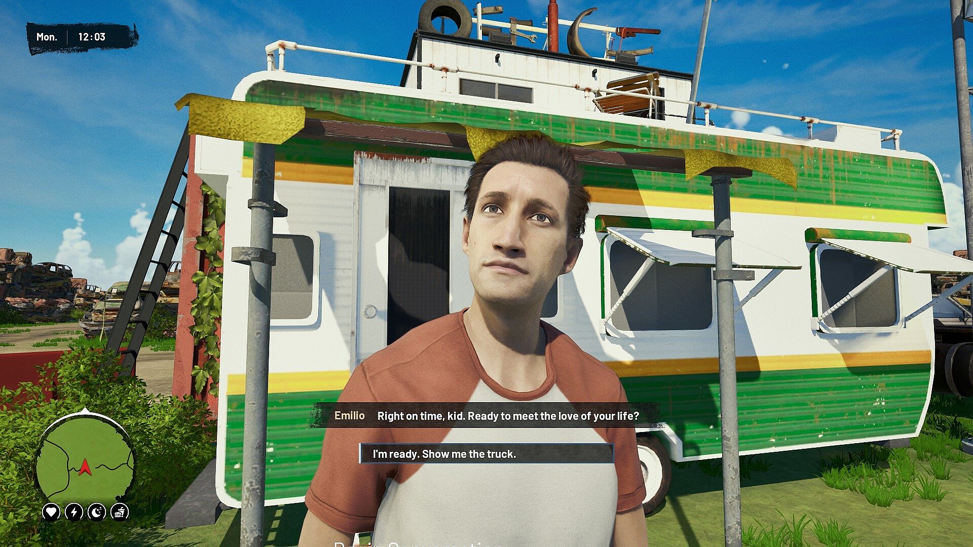 The most important part of any journey is the stops along the way. Park your rig, step out of the cab, and explore the world on your own two feet. Walk into a store for supplies, grab a bite at a roadside stand, or visit the junkyard to scout for rare parts. Forge relationships, manage your own needs, and experience a level of immersion that goes far beyond the highway.