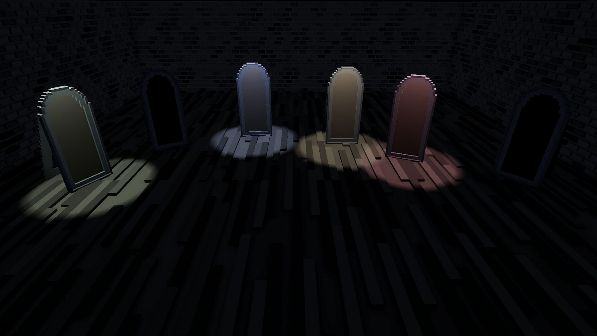 • The round ends if the player steals the "cursed" scroll. For this, the player is sent to a room with 6 mirrors.