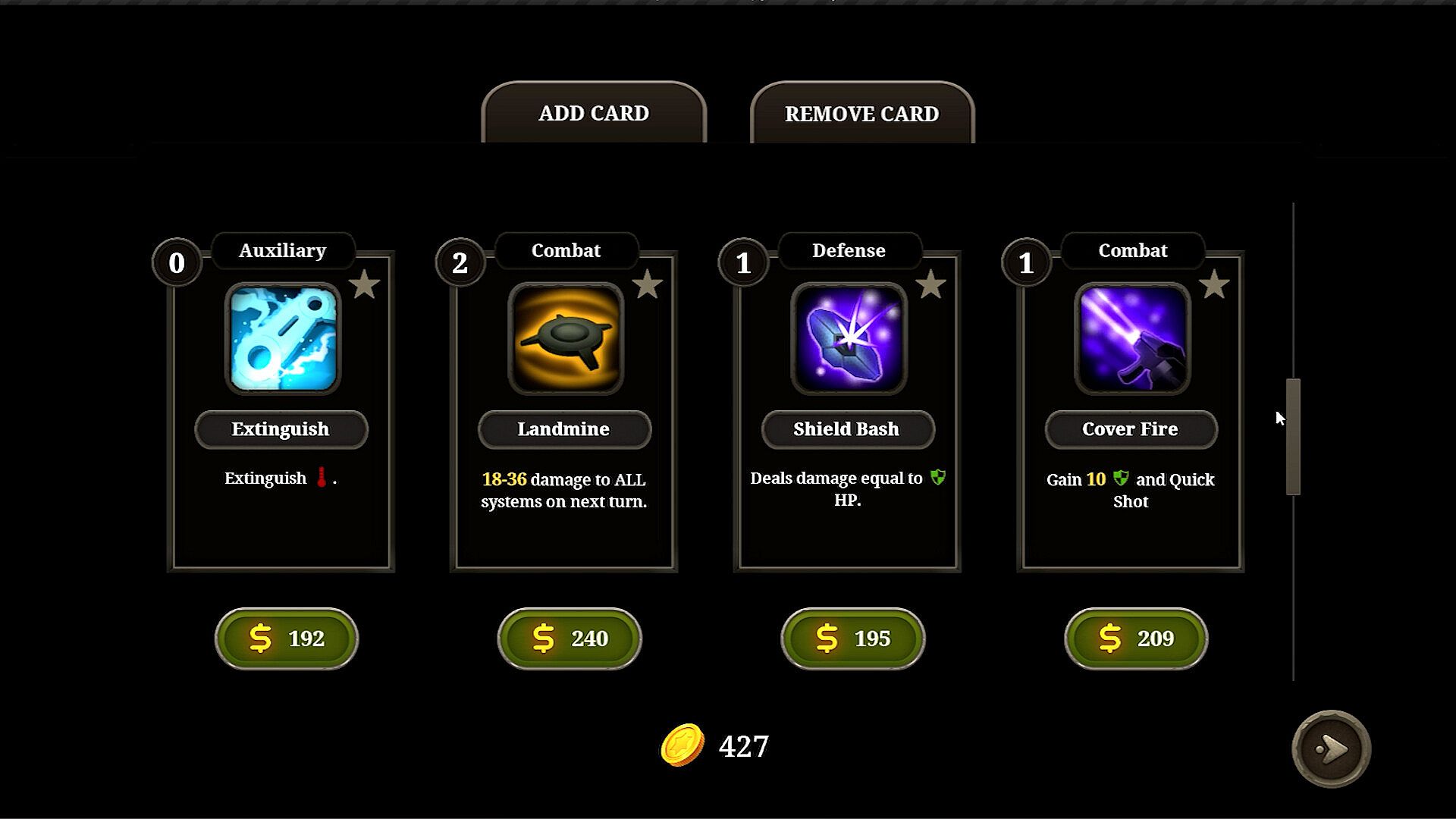 Create a one-of-a-kind combat deck comprising of an array of offensive and defensive cards.
