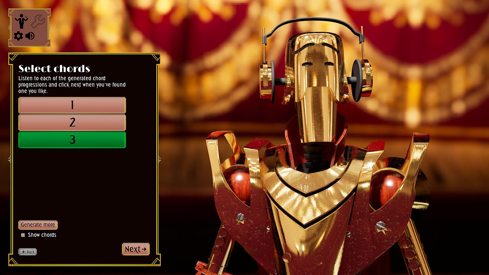 Jam along to Robo Maestro on your favourite instrument or vocals! This automatic mode will let Robo Maestro endlessly evolve the music, fully automatically, as a backing for your own improvisation. Or enable the full features and just sit back and be surprised by what Robo Maestro can generate!