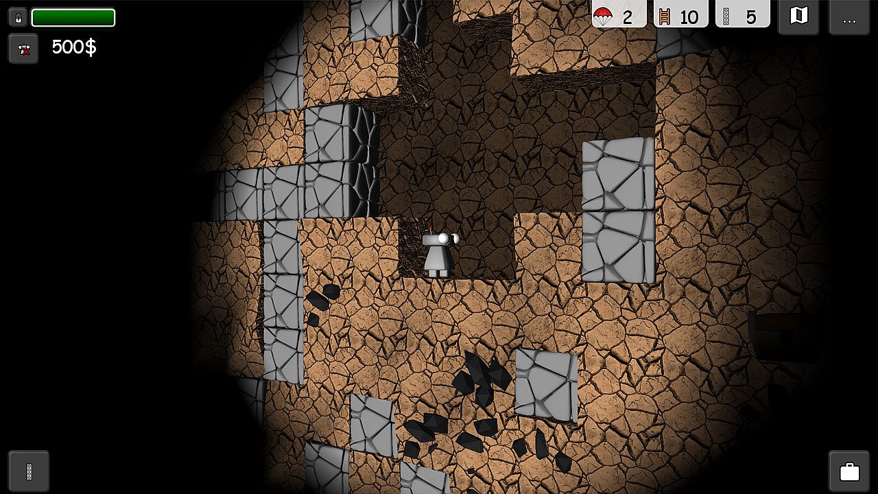 You have to be careful where you dig and keep your robot from cave-ins and other dangerous blocks. Use dynamite to make your way trough undrillable blocks and find yourself using parachutes, scanners, ladders and pillars to get back to the surface and recharge your batteries. How deep can you get?