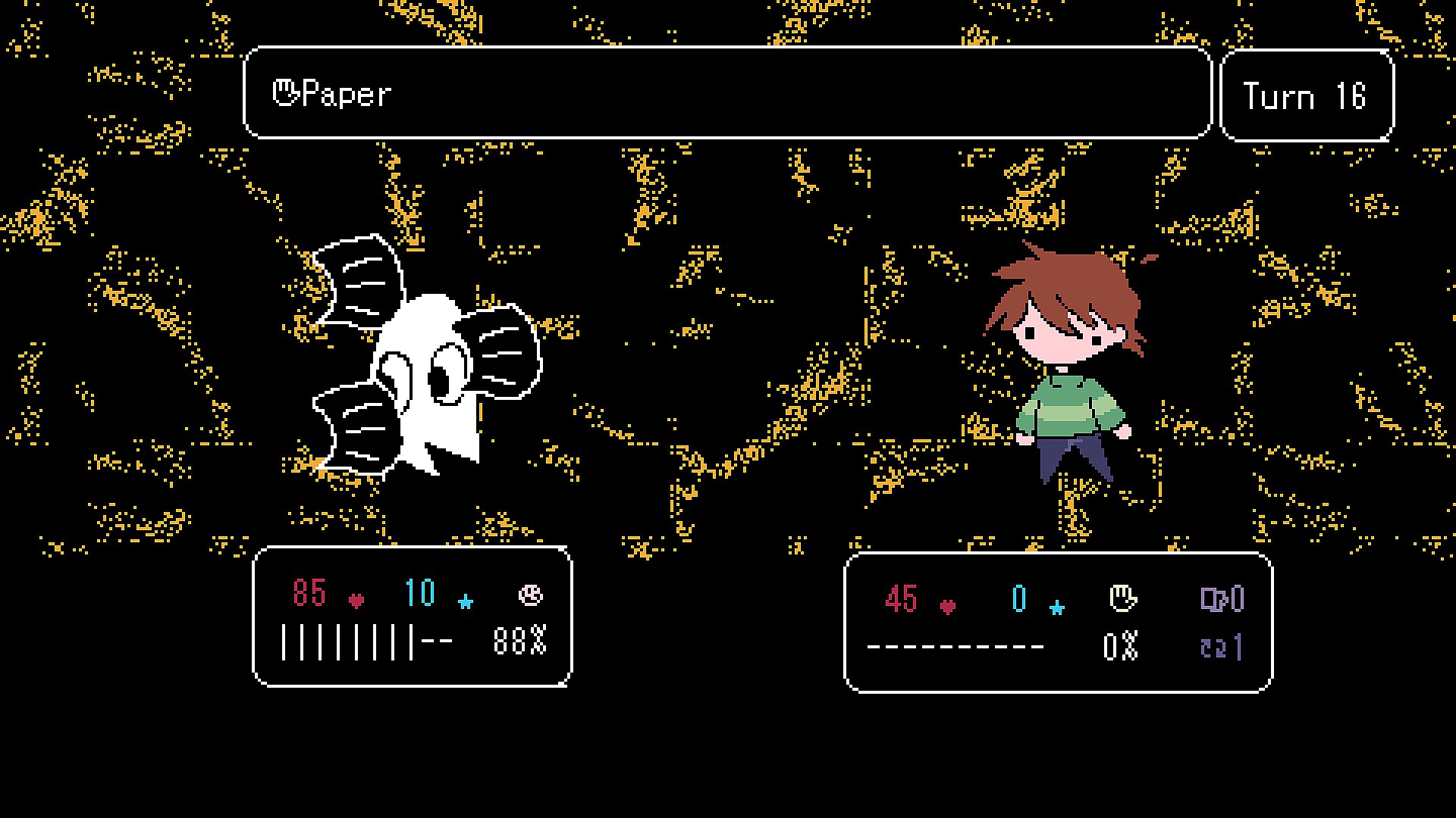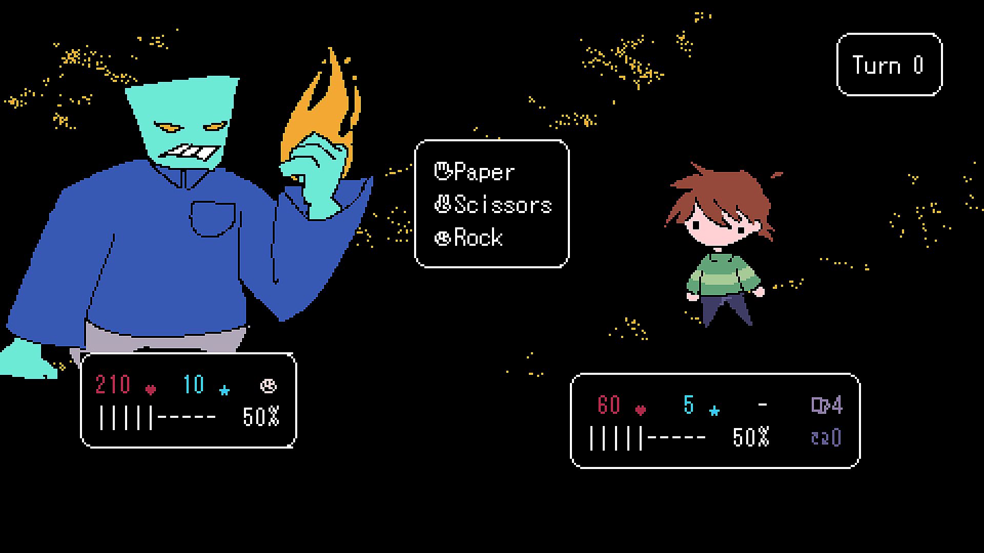 We've got ✊ Rock, ️ Paper, AND ✌️ Scissors. Play your cards right, because every time you do your sign changes to match it. You'll have to play smart and manage your resources to avoid opening yourself up to deadly crits and dish out some of your own.