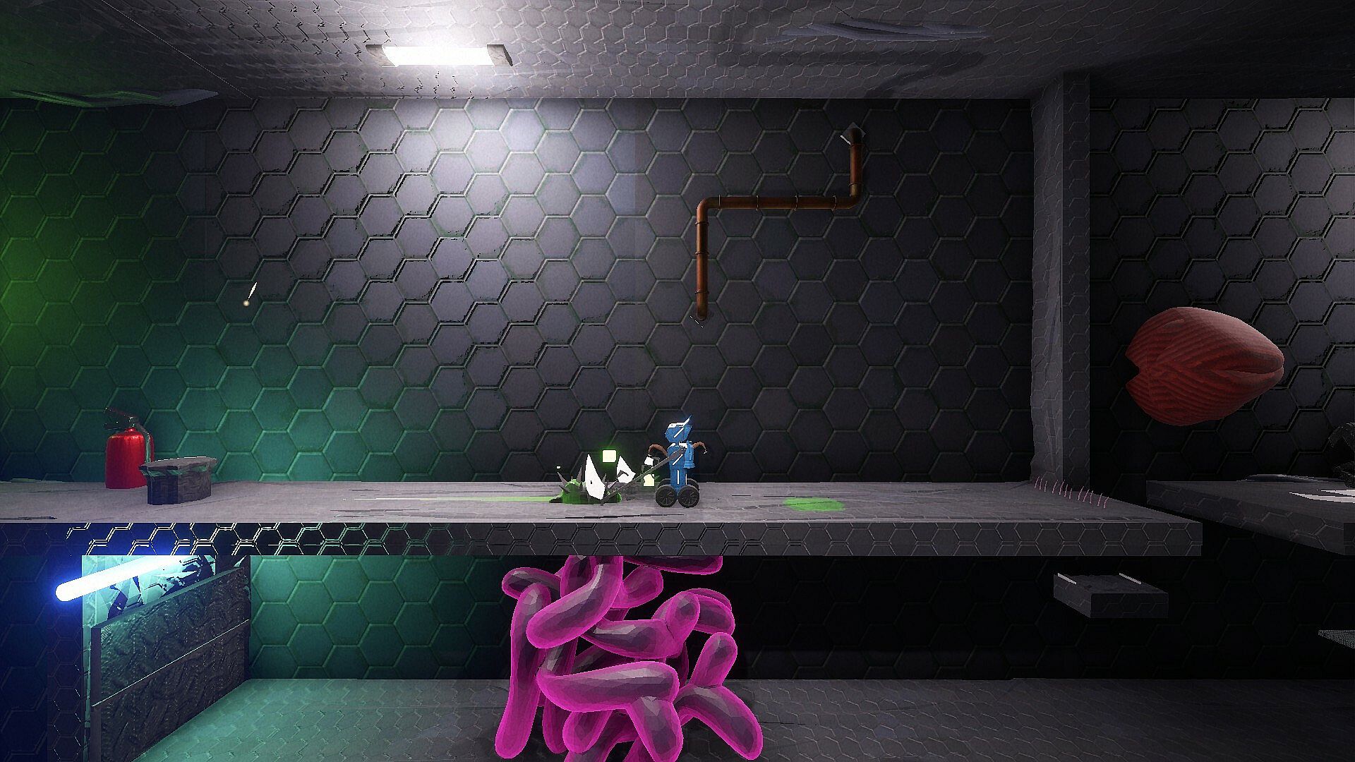 Take advantage of the 2.5D dimension to explore rooms with platforming segments.
