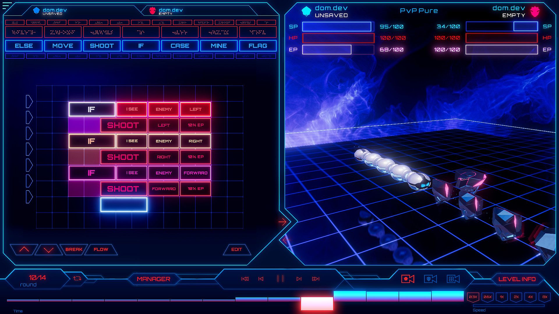 Robosnakes: Core Wars Legacy is a game which doesn't require you to invest hours upon hours into to get a higher chance of winning. Fair play is one of the most important ideas of RoboSnakes, where the players and the AI have the same amount of power.