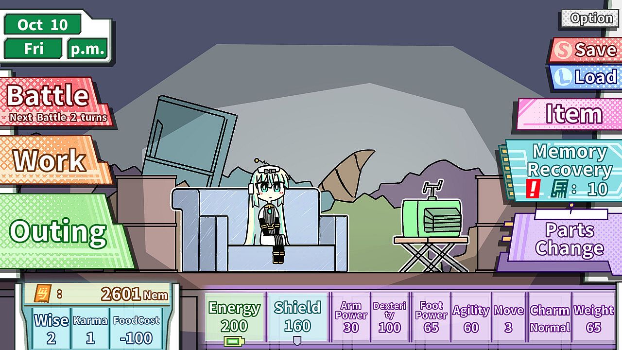 You can choose actions such as going out, working, and participating in tournaments, and enjoy encounters with unique humans and robots.