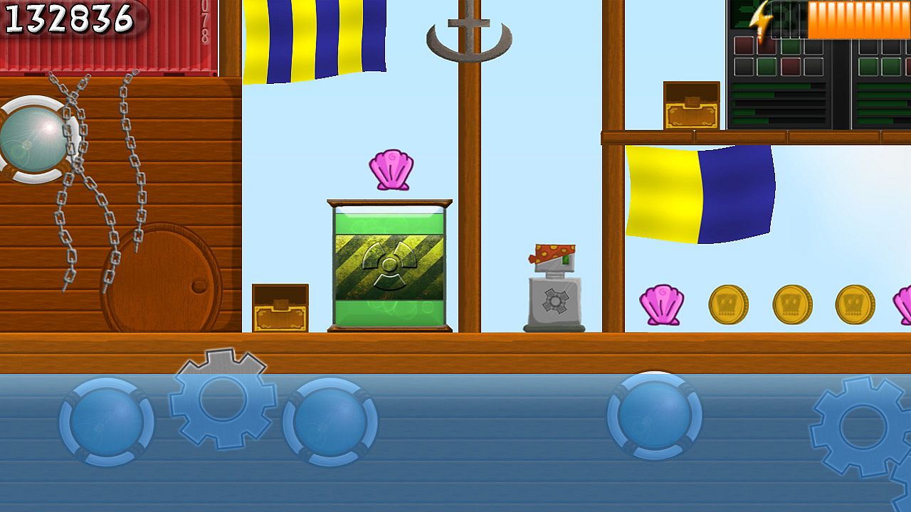 You are a robot pirate, sail the sea, jump the ships and collect as much booty as you can in this fun, frantic & formidable platformer! With randomly generated ships and endless challenges, this is a great time-killing game to test your platforming skills. Remember, even though you're a pirate and you know how to work it, you can't touch the water as it makes you short circuit! Stay alive by avoiding the enemies, the water and the ever-getting-faster tidal wave behind you!