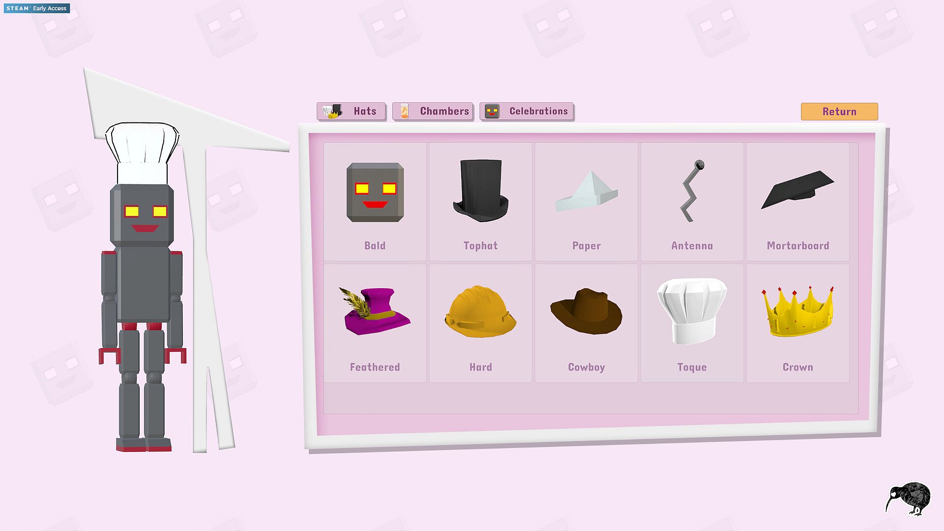Personalise your robot with a variety of hat and chamber cosmetics