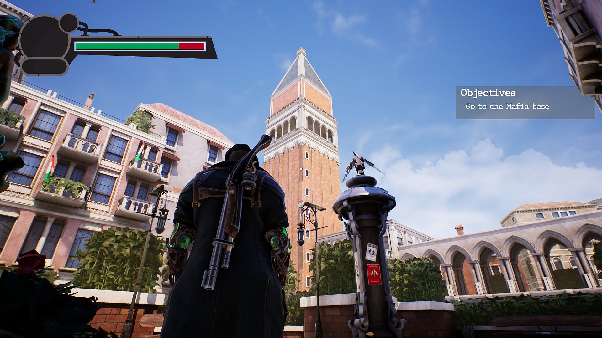 Also be aware of your environment, we don't know why but the Robot Mafia started to distribute explosives through the city, you may use them to your advantage. But please be careful, venezian citizens weren't able to close their business properly, try not to destroy their properties, even if it is oddly satisfying to watch their storefronts crumble into pieces.