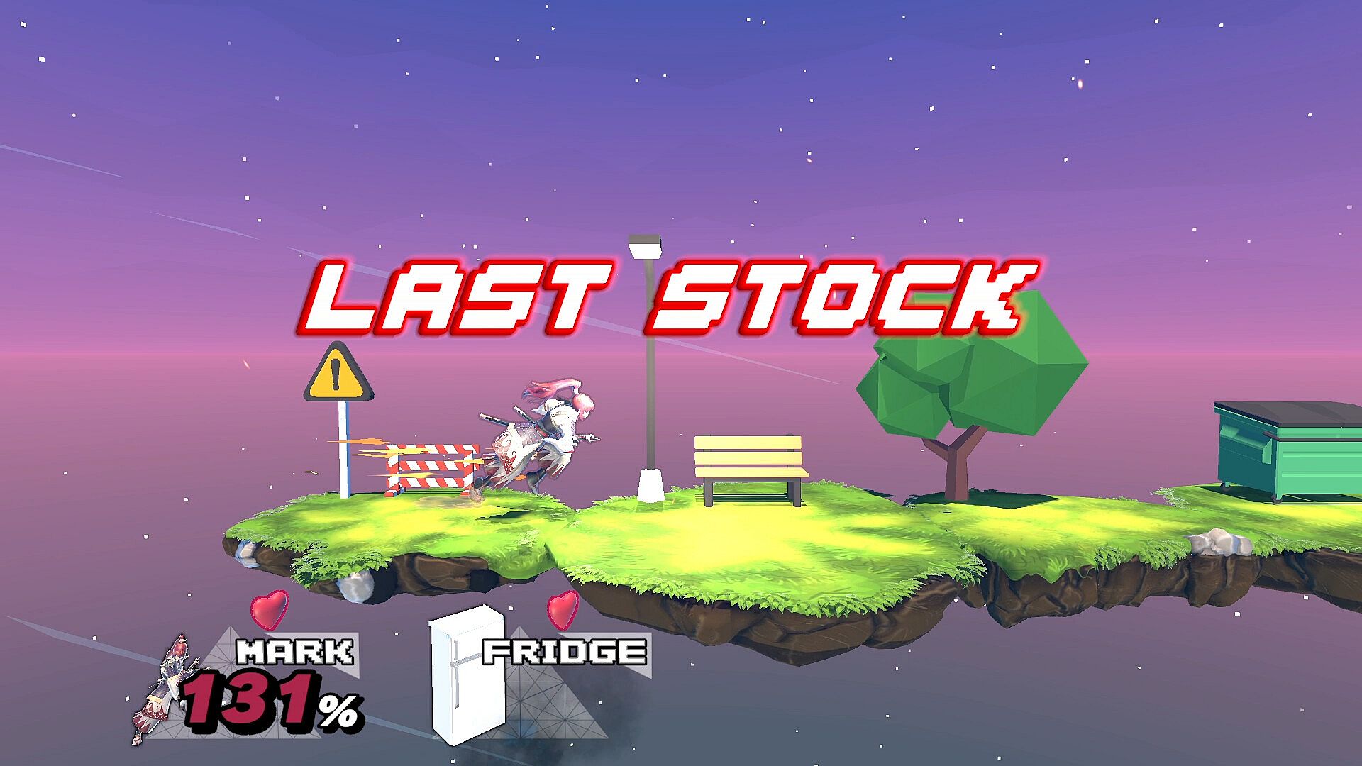 Mark boasts disjointed sword attacks and has unique movements when attacking; Scissors performs a forward dash, Paper is akin to an extra jump with an uppercut motion, and Rock does a downward fast falling dive.
