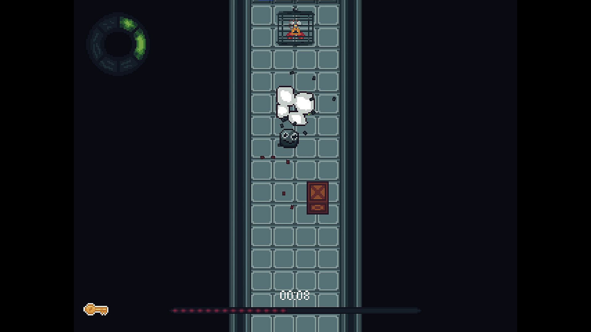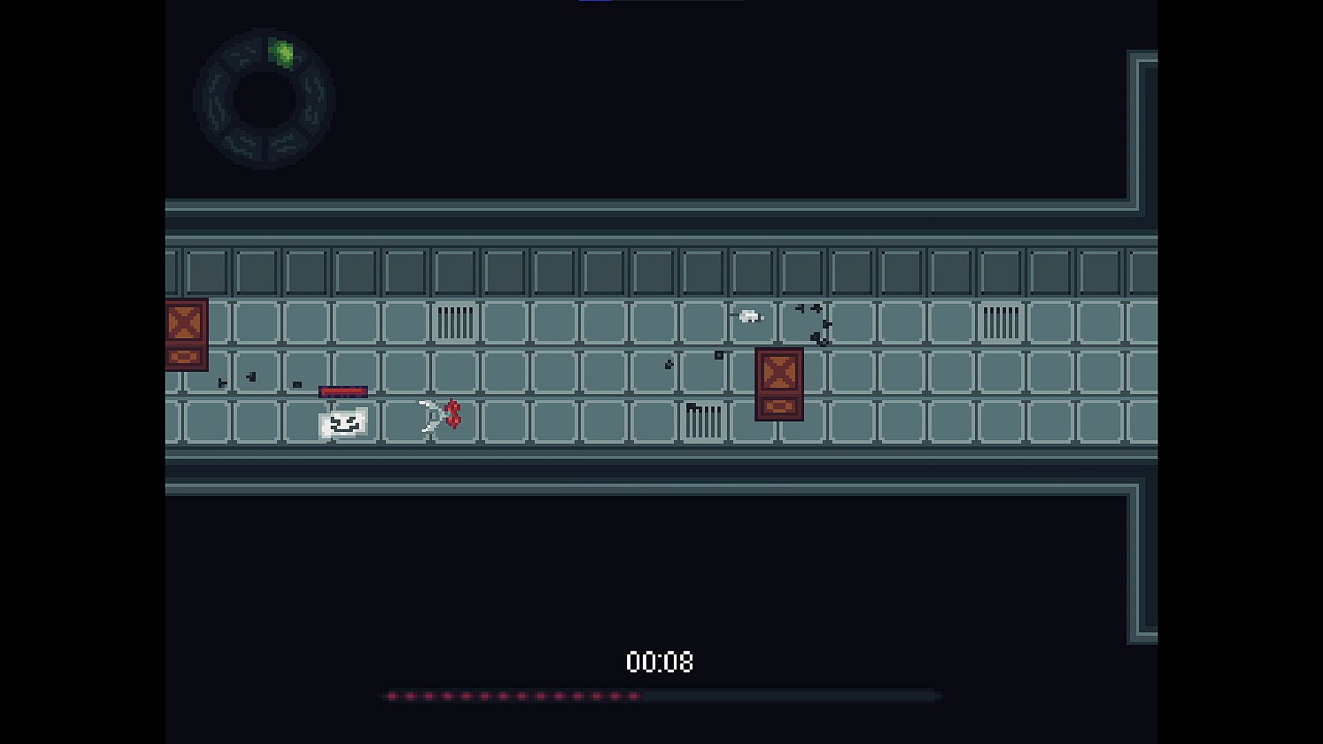 In ROCK RUSH you have to play through a set of 5 sections for each level (usually). You only have 15 seconds on the clock and you gain a slight amount of time at the end of each level. To complete a section you need to grab the key, then free the scissors. You will be graded based on how well you played at the end of a level. As well as the ticking time until you eventually crash you have to deal with your stamina. The only way to increase it is to find syringes in boxes. Another building layer is the challenge to avoid paper. The paper can never truly die until you complete the level as the paper can tape itself back up. The only way to truly defeat paper is by rescuing the scissors which will then cut the paper. If the paper grabs onto you, it will squeeze you until you die. Once you get further in the game you can get guns along with boxes that can only be destroyed by guns. These guns are useful in stalling paper and breaking boxes, but it's hard to aim while dashing, forcing you to stop and waste time. This game also only has 3 lives, when they are all lost you must restart to level 1. All these chaotic elements create a game that requires fast thinking, along with mastery over the gameplay, and the systems within the game. It's a hard game that always makes you feel like you can make it, yet you keep dying over and over.