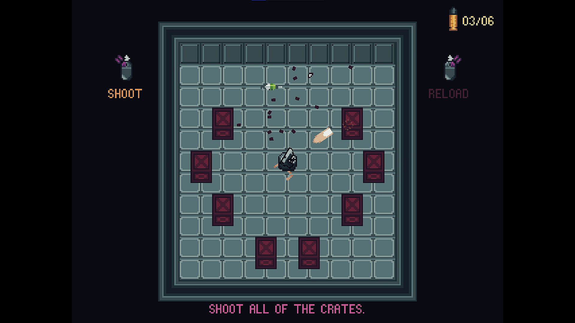 In ROCK RUSH, you are Stoner (the dumbest rock in the world). He decides one day that he wants to figure out a way to defeat paper, and in turn, Break The Cycle. His logical decision is to pump dangerous experimental drugs into him and grab his gun. This allows him to dash (dashing is good as rocks cannot walk). It makes him able to avoid paper and rescue scissors (which cuts the paper). The underlying question is what will the effects of the choice to Break The Cycle be?
