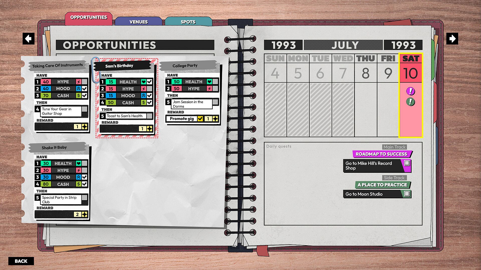 Navigate the music industry's moral minefield—negotiate with predatory record labels, compromise (or don't) on creative vision, and balance authenticity against commercial pressure. From jaded venue owners to music promoters, and stone-cold label executives — your legend is written through the relationships you forge, the deals you accept, and the lines you refuse to cross.