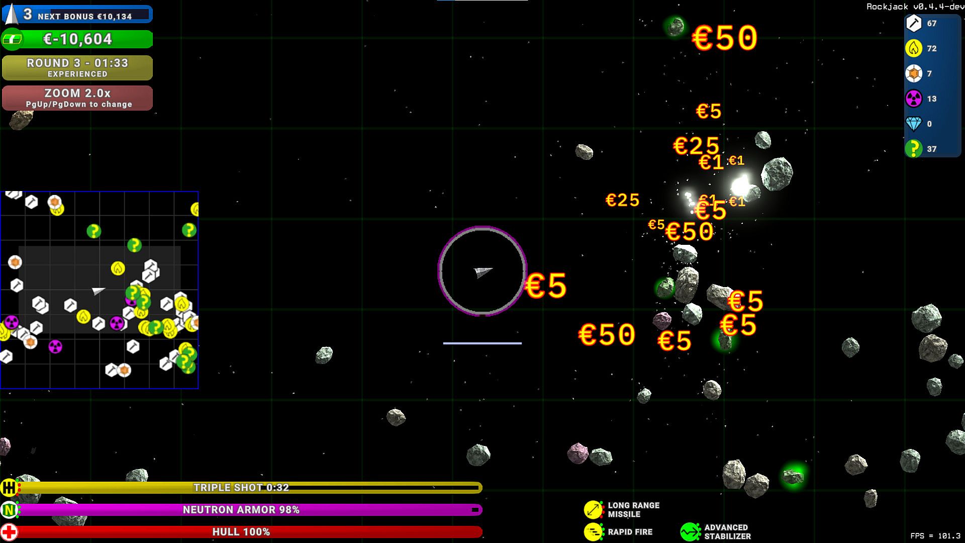 ROCKJACK is a new space shooter inspired by the classic ASTEROIDS from 1979, as well as other games in the genre, all given a modern refresh. Fast, fluid, immersive gameplay is our primary goal in creating ROCKJACK!