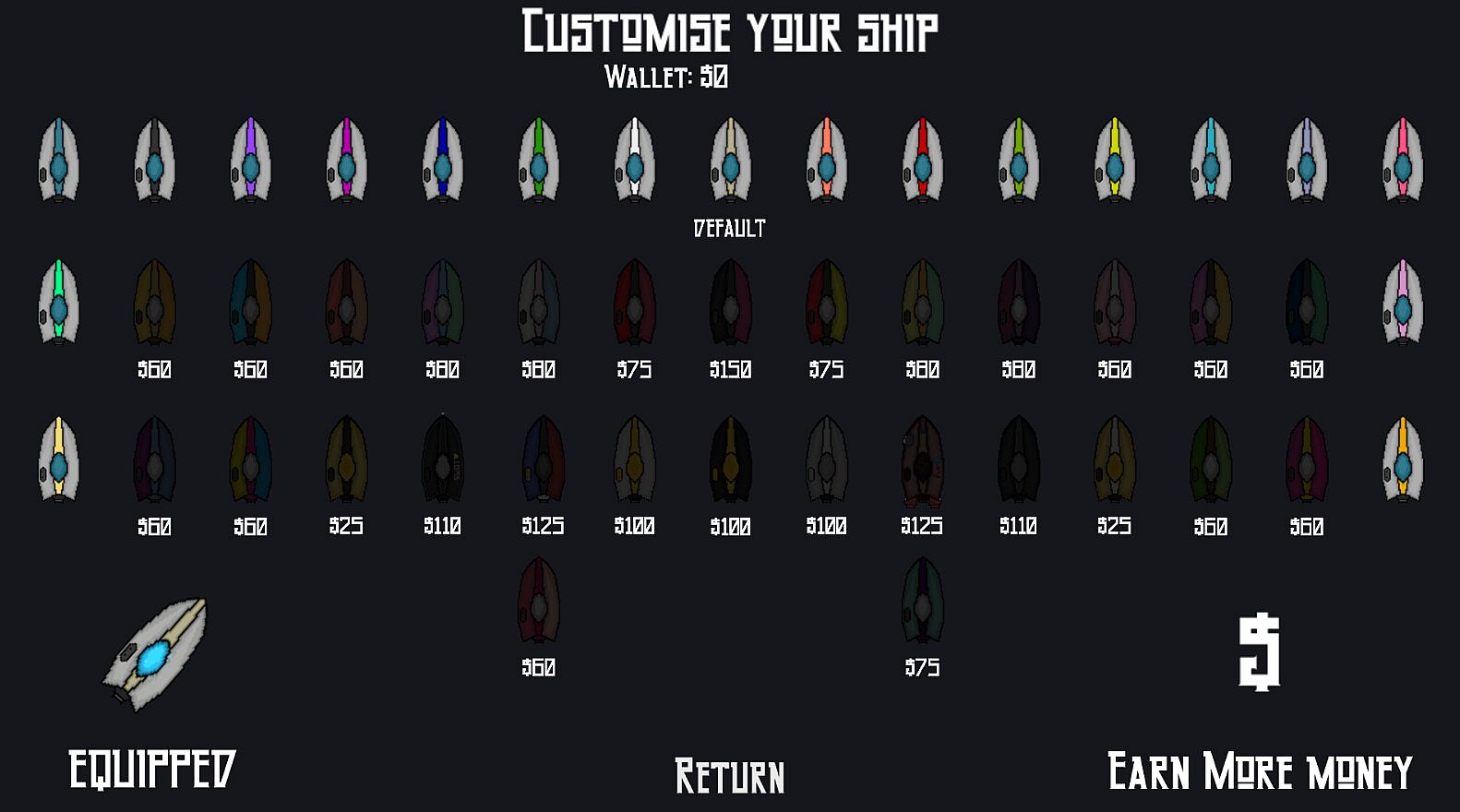 Customize your ship with unlockable cosmetics