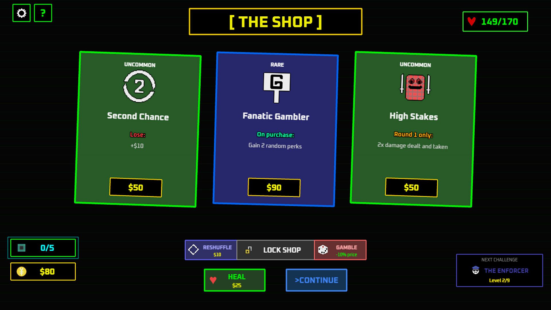 • Combat Blackjack: It’s not just about getting close to 21. Use your card values combined with your Strength stat to deplete the Dealer Boss’s HP before they bankrupt you.