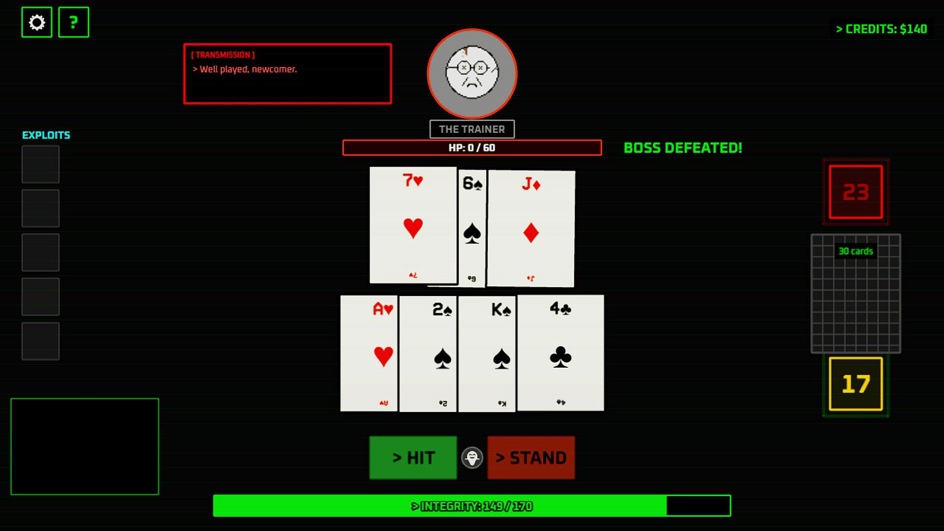• Lots of Unique Exploits: Turn math into a mere suggestion. Stack perks like Limit Breaker, Cheater's Deck (22 counts as 21), or Erm Acthually (deal damage even on a Push).