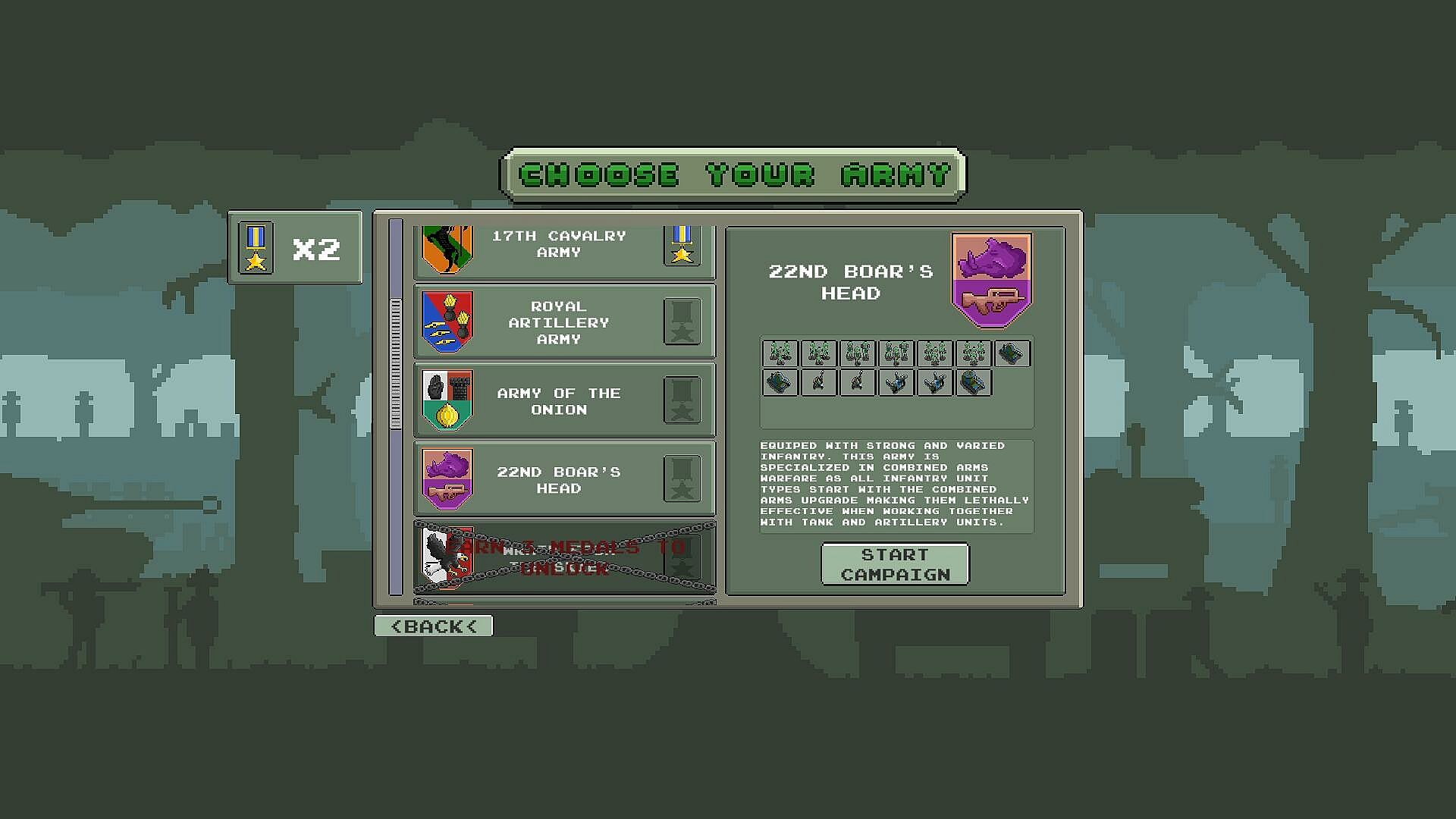 At the beginning of each new campaign you are presented with the option to pick one of fifteen unique armies, each with their own strengths and weaknesses.