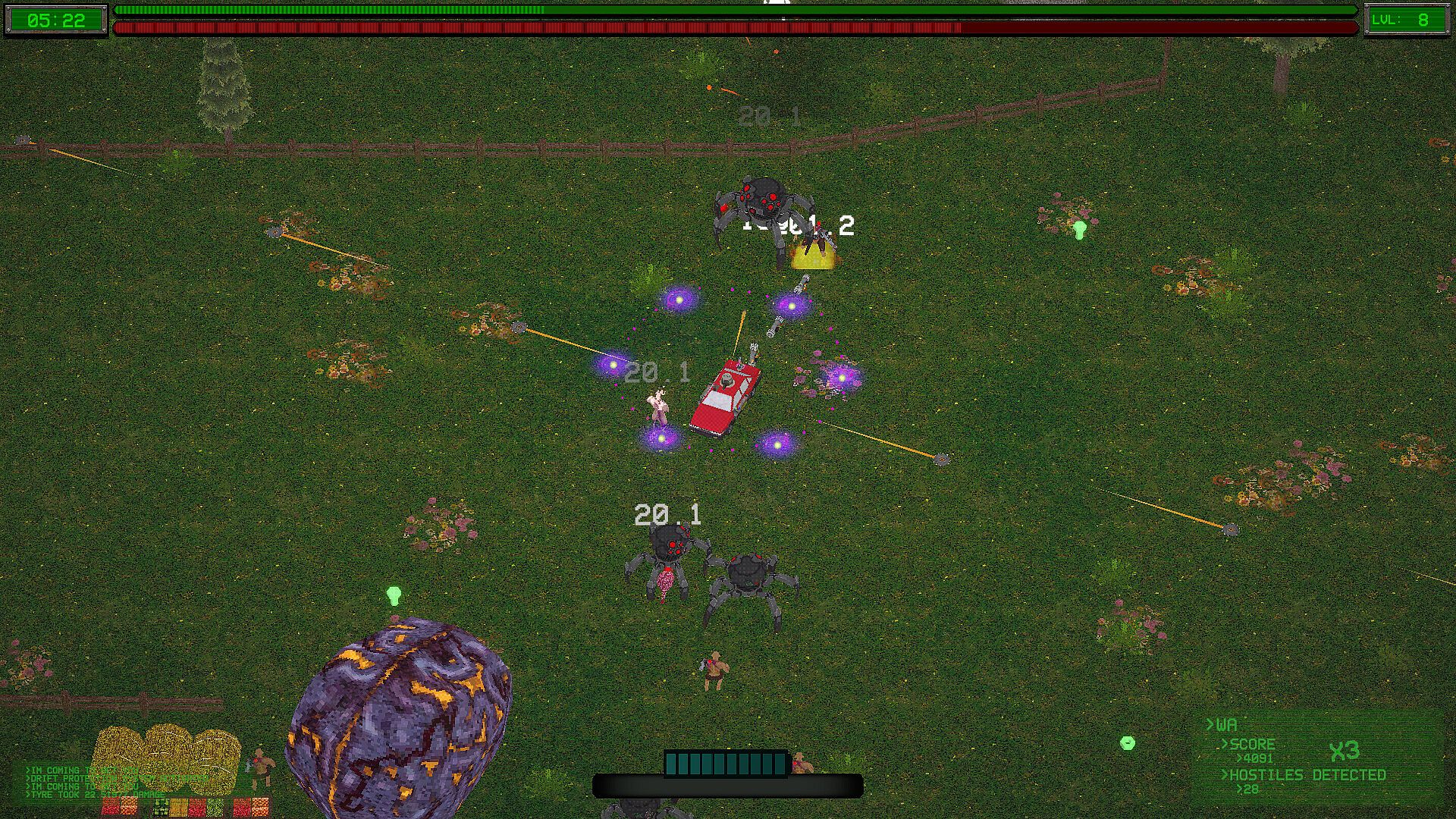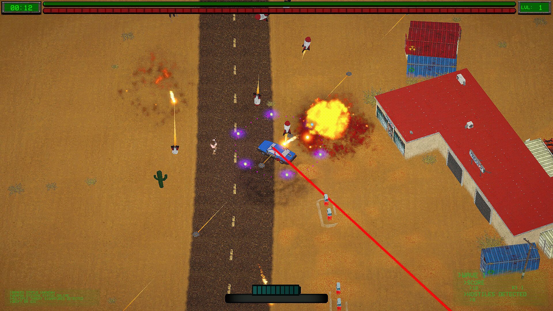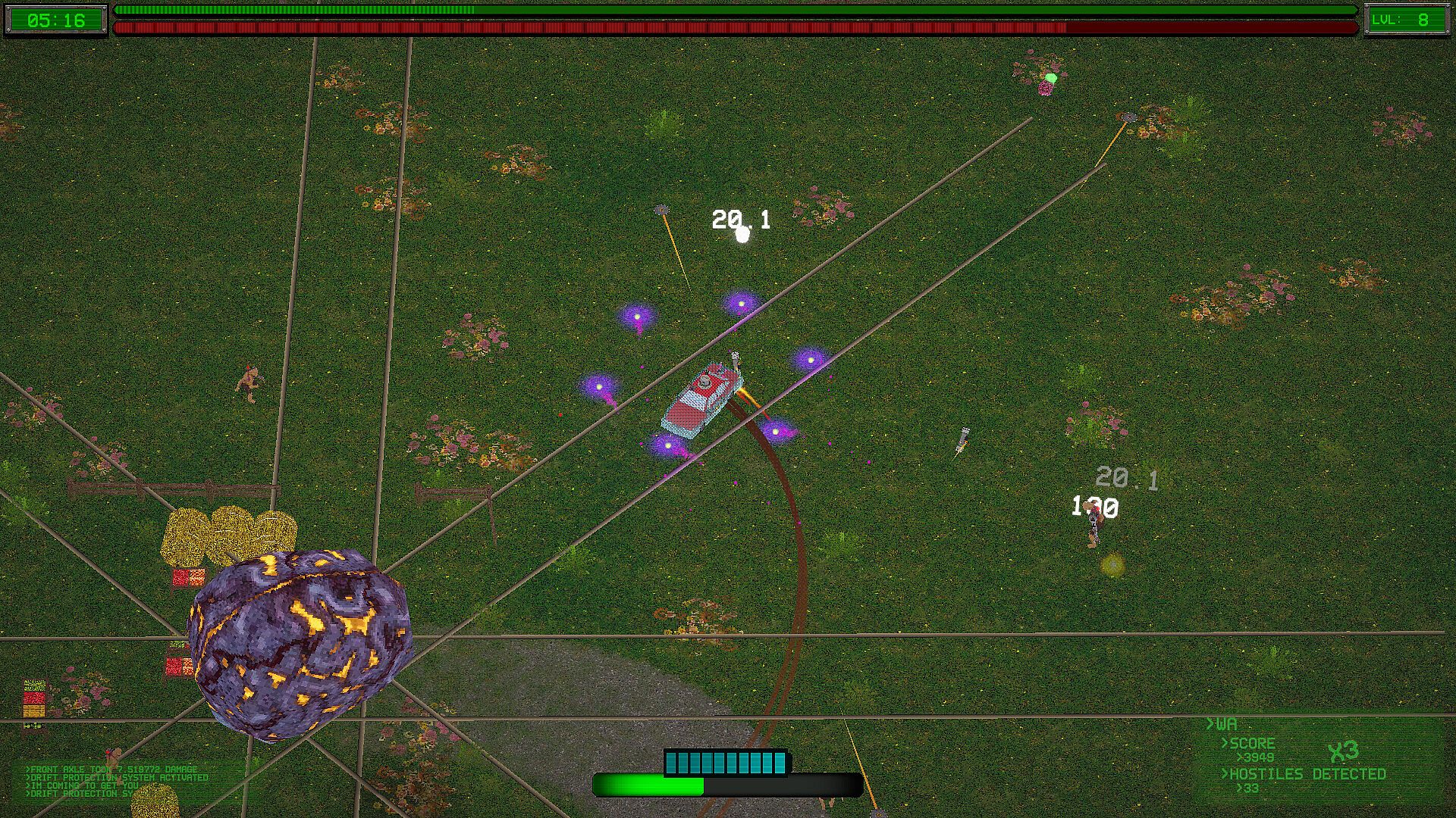You start in a rundown garage with nothing but a beat-up ride and a burning need to escape. But this isn’t just survival—it’s style. Drift through procedurally generated biomes, collect XP, boost your kinetic battery, and unleash a chaotic arsenal of weapons that grow stronger with every encounter.