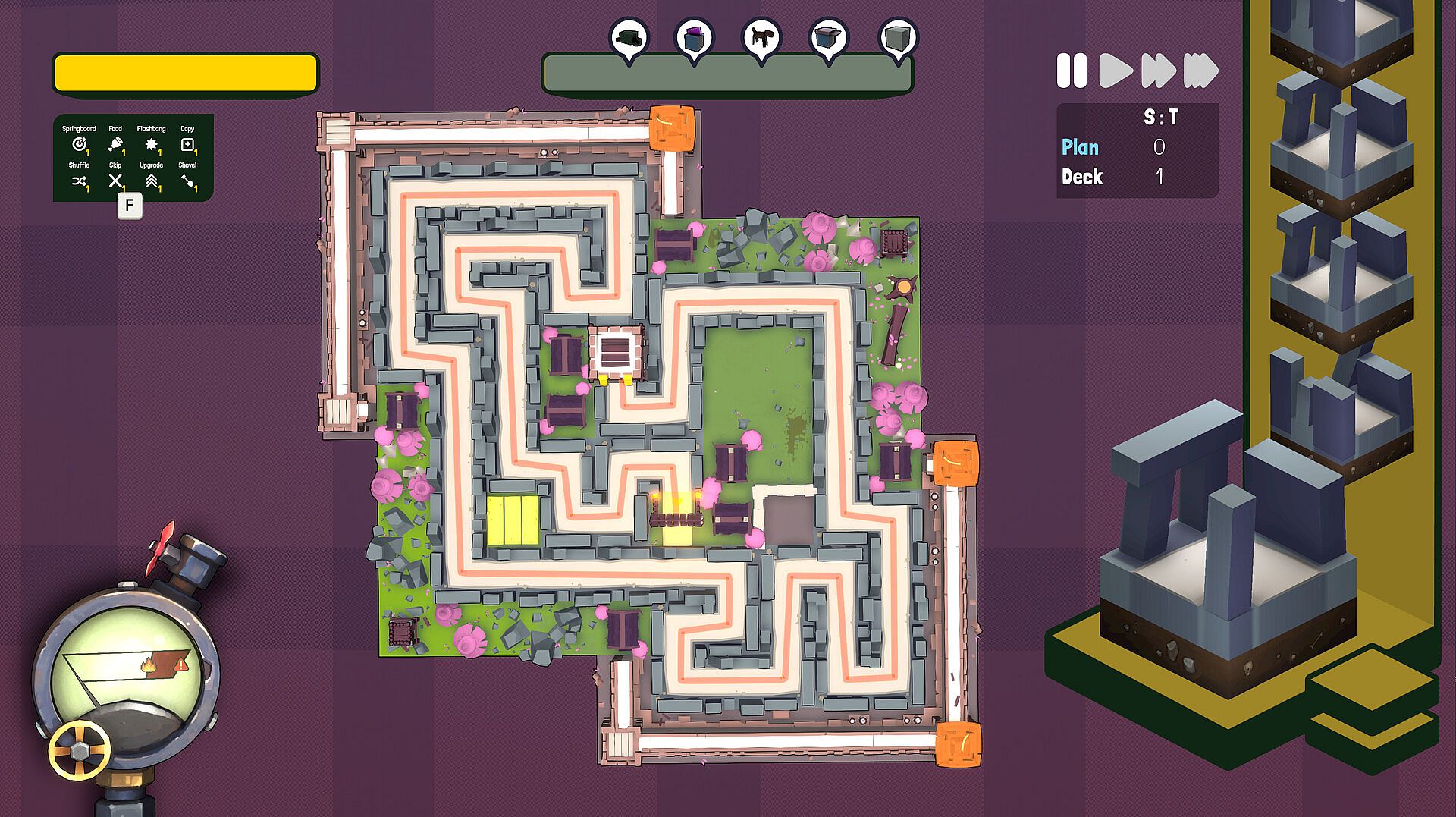 • Strategic Gadgets – Use items like snacks, springboards, shovels, and shuffles to manipulate Rogues, rearrange your labyrinth, and straighten up your hand. An effective manager uses every confiscated item in their toolkit.