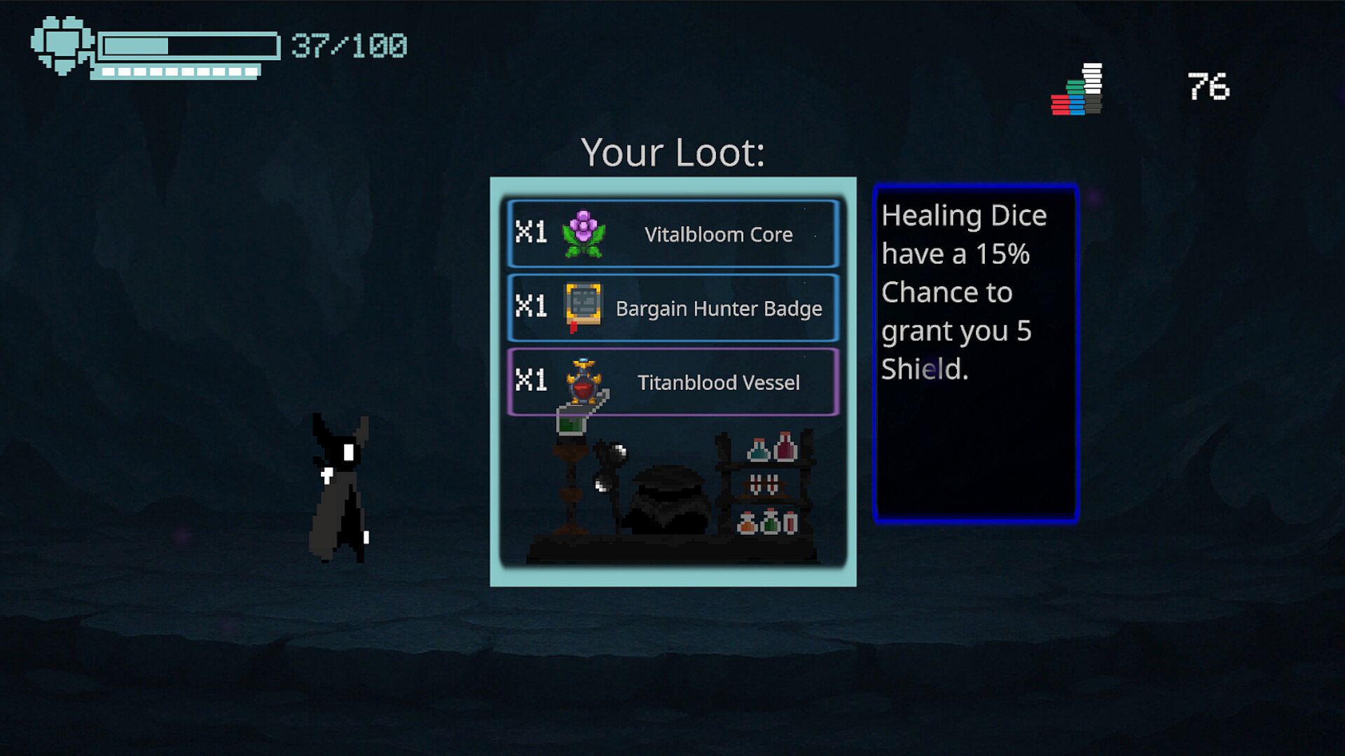 Rogue ’n’ Roll is a dark, dice-based roguelike where every decision is governed by chance — and how you bend it.