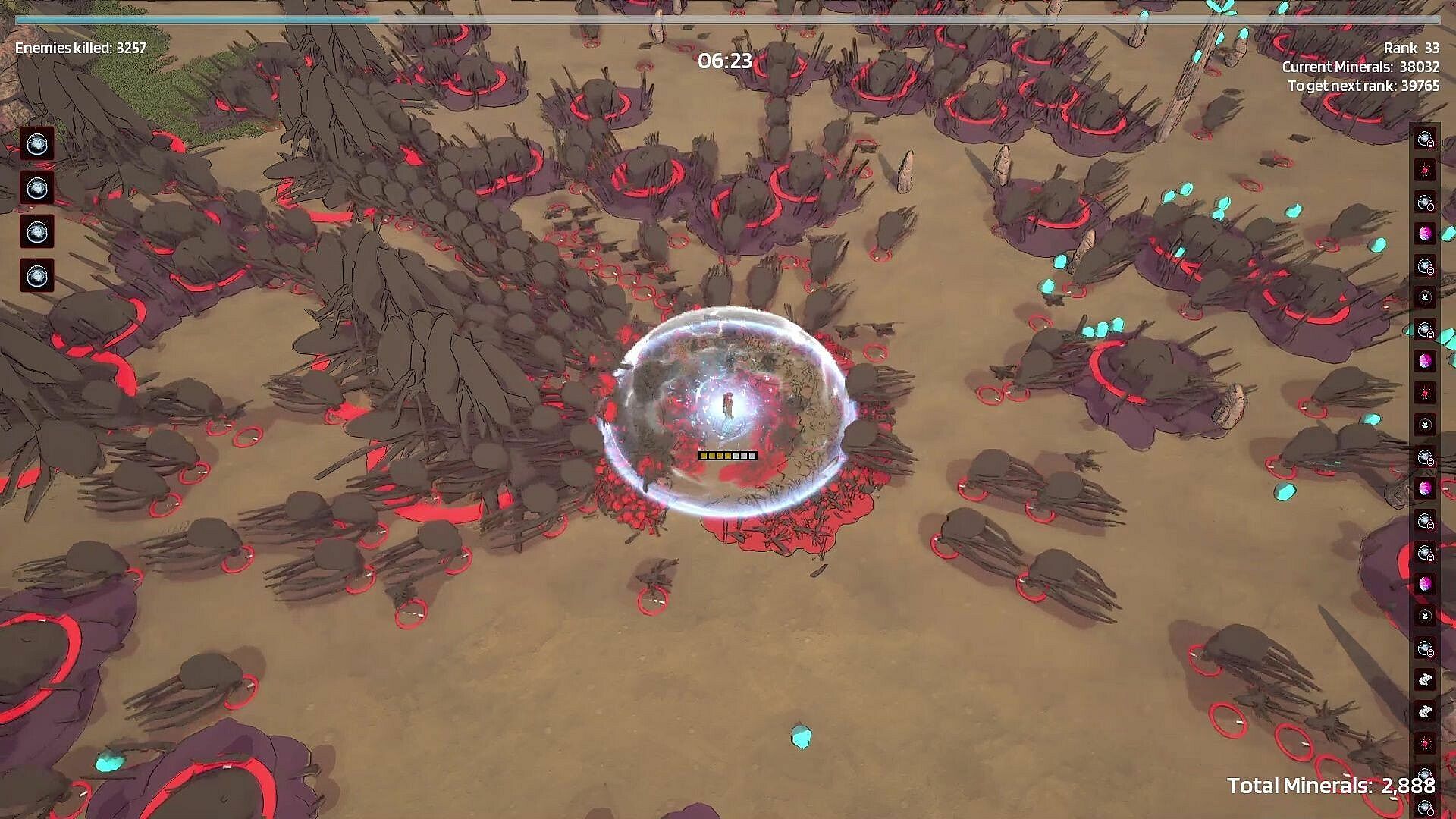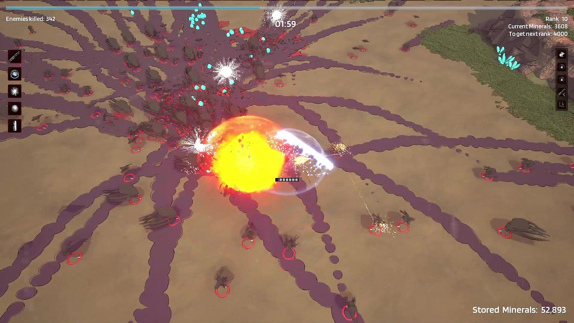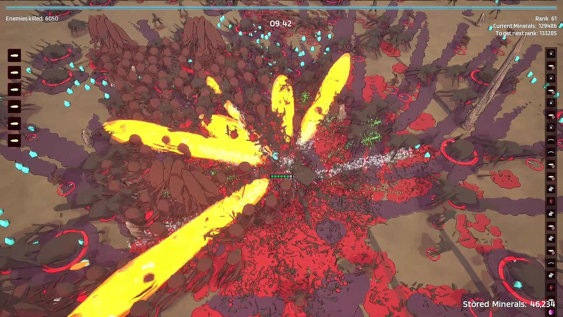 Gather minerals in each run and bring them to your base of operations to buy new weapons and upgrades and help yourself in the next run.