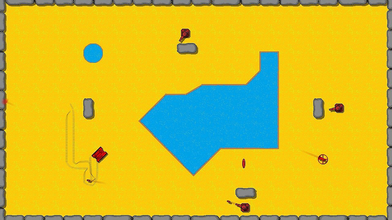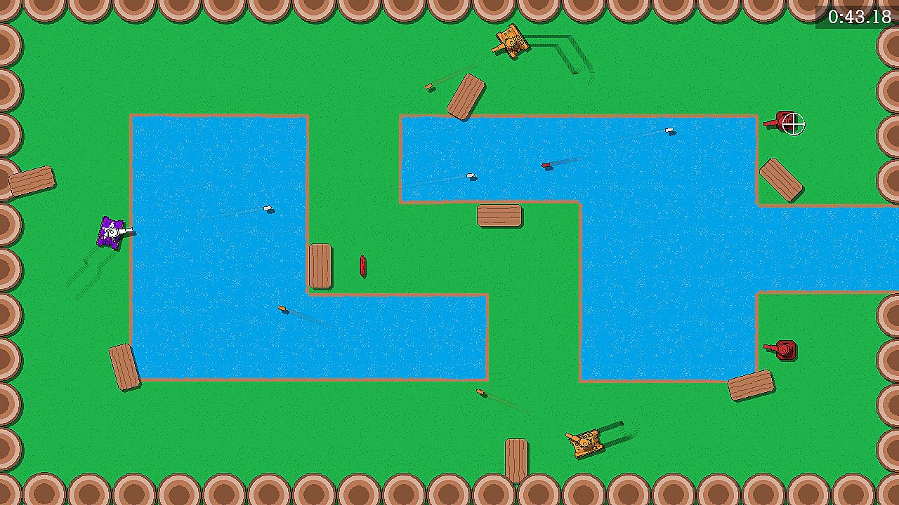 Defeat every enemy in 20 randomly selected rooms from a list of 54 hand-crafted levels. After defeating every enemy in a room, choose an upgrade to make your tank faster and stronger. Supports 1 to 4 players locally. Defeat special bosses like the 4-directional, lob-shot, and homing missile tanks to unlock them to play as. Clear special challenge rooms and complete other missions in each run of the game.