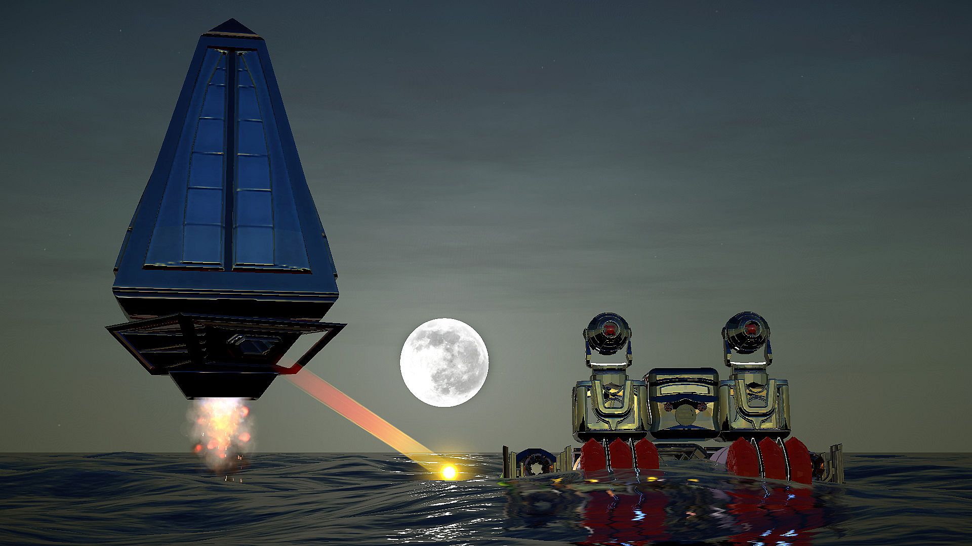 Build your ship taking into consideration aspects such as buoyancy, stability, energy generation and weaponry.