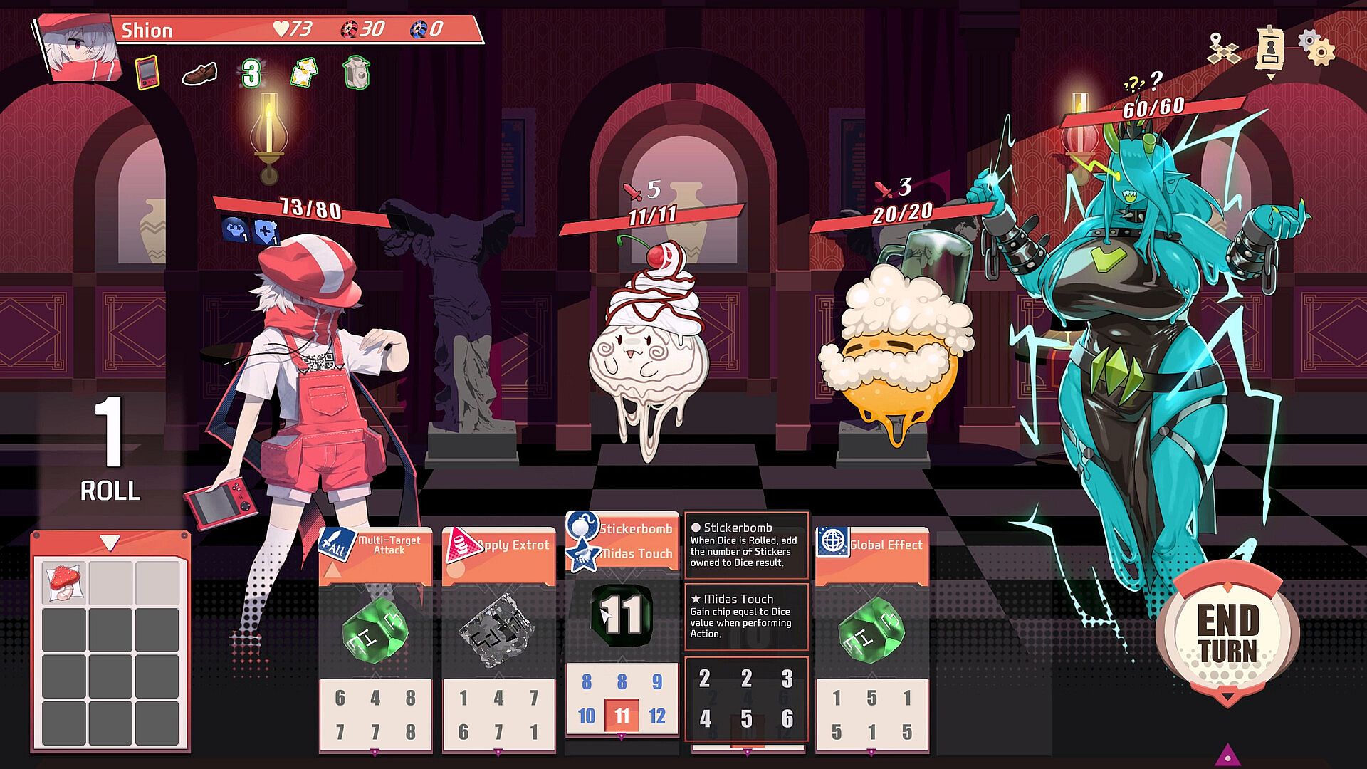 • Upgrade dice values through modifications, attach stickers (up to two!) for special effects, or get artifacts to enhance your entire dice deck.