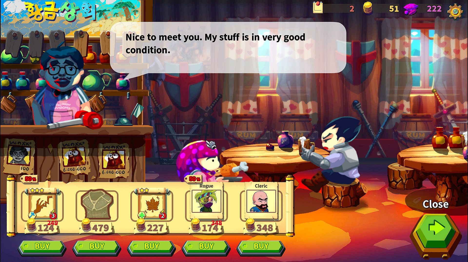 - Exploring a new changing world : The moment you start a new adventure in pursuit of the secret of a meteorite, the world of Rogueria changes. You can choose a safe path depending on your hero's condition. Sure, it's risky, but you can also choose a route that offers better rewards. With every new adventure you'll face completely new situations: battlefields, items, monsters, events, and even the heroes waiting for you.