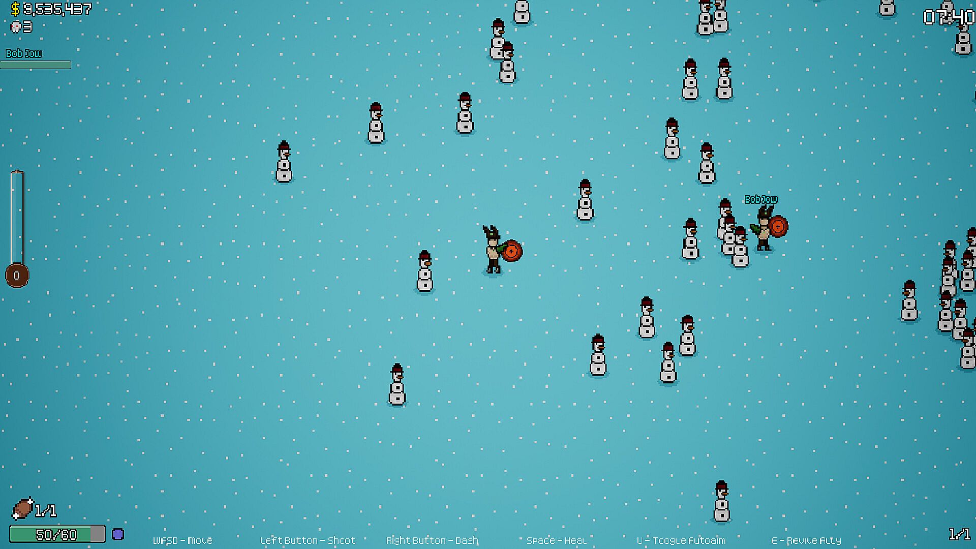 Survive on a timed stage against hordes of enemies getting ever stronger, be it alone or with friends.