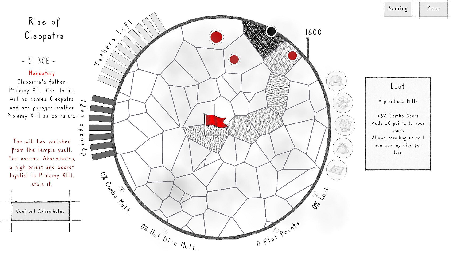 Roll for Echoes is a roguelite dice-builder that combines the classic push-your-luck mechanics of Farkle with deep, ARPG-style loot synergies. Recruited by a manipulative, god-like time machine, you must throw dice to repair broken historical timelines before reality collapses.