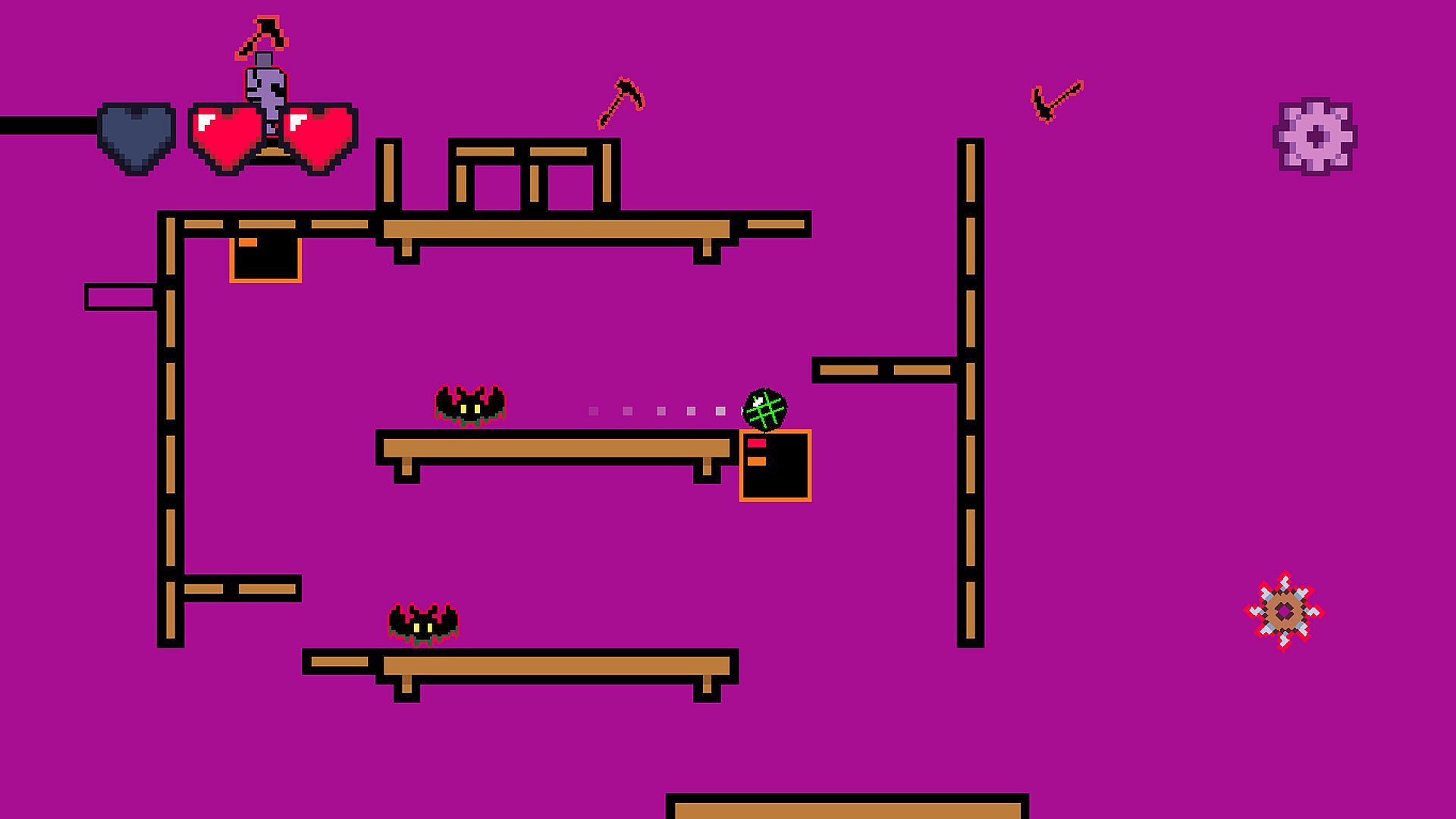 As your rolling and bouncing you way through each world you will come across many, MANY, different types of enemies. Such as a bat that will patrol a platform, a spooky ghost that will quickly catch you off guard, or even a small purple hazard that throws quite the surprise if you fail your timing...  That's not all, not even close to the various foes that you will face.