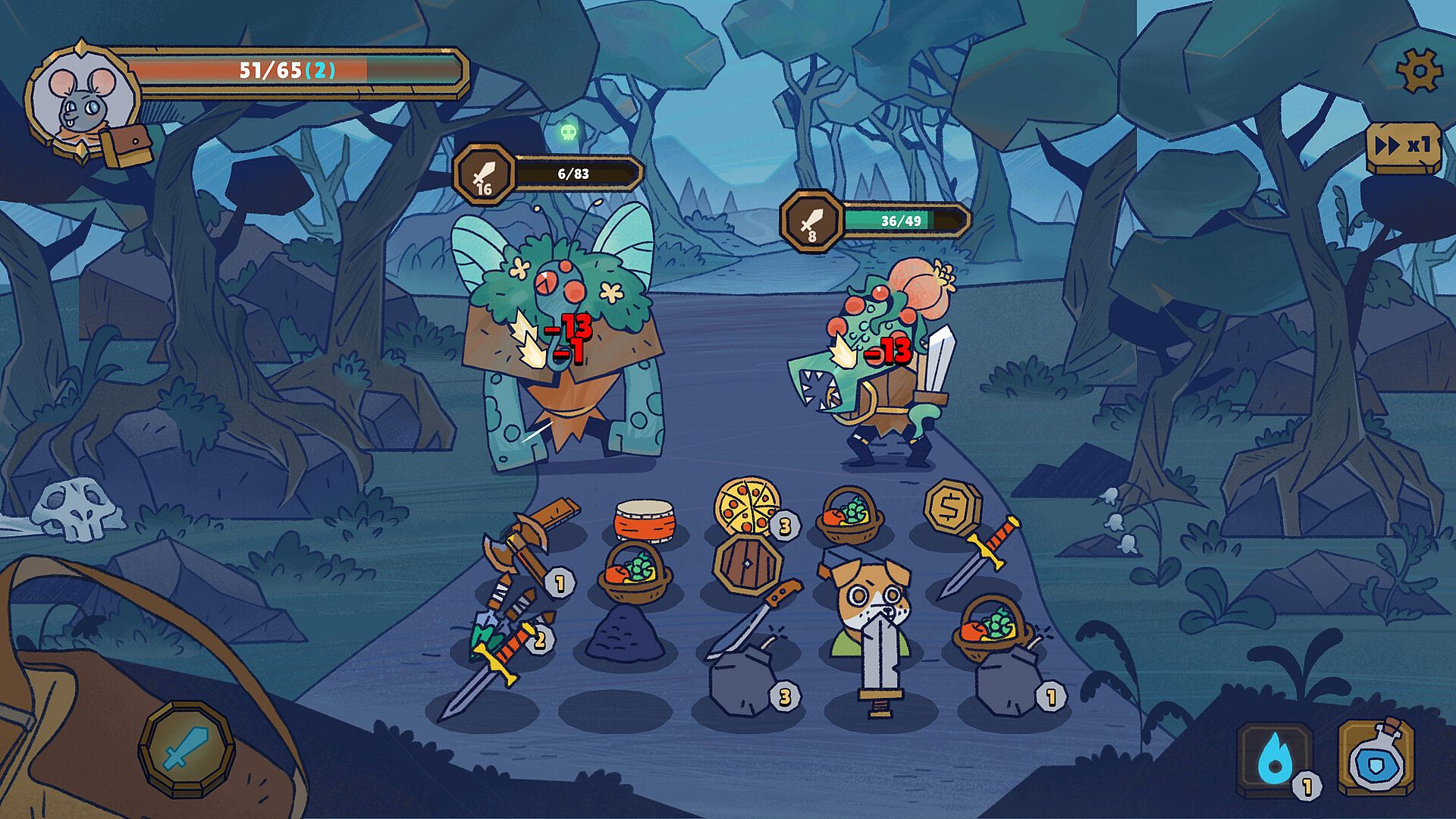 Each turn, you can choose a new item to toss into your backpack and hurl it onto the battlefield to attack enemies.