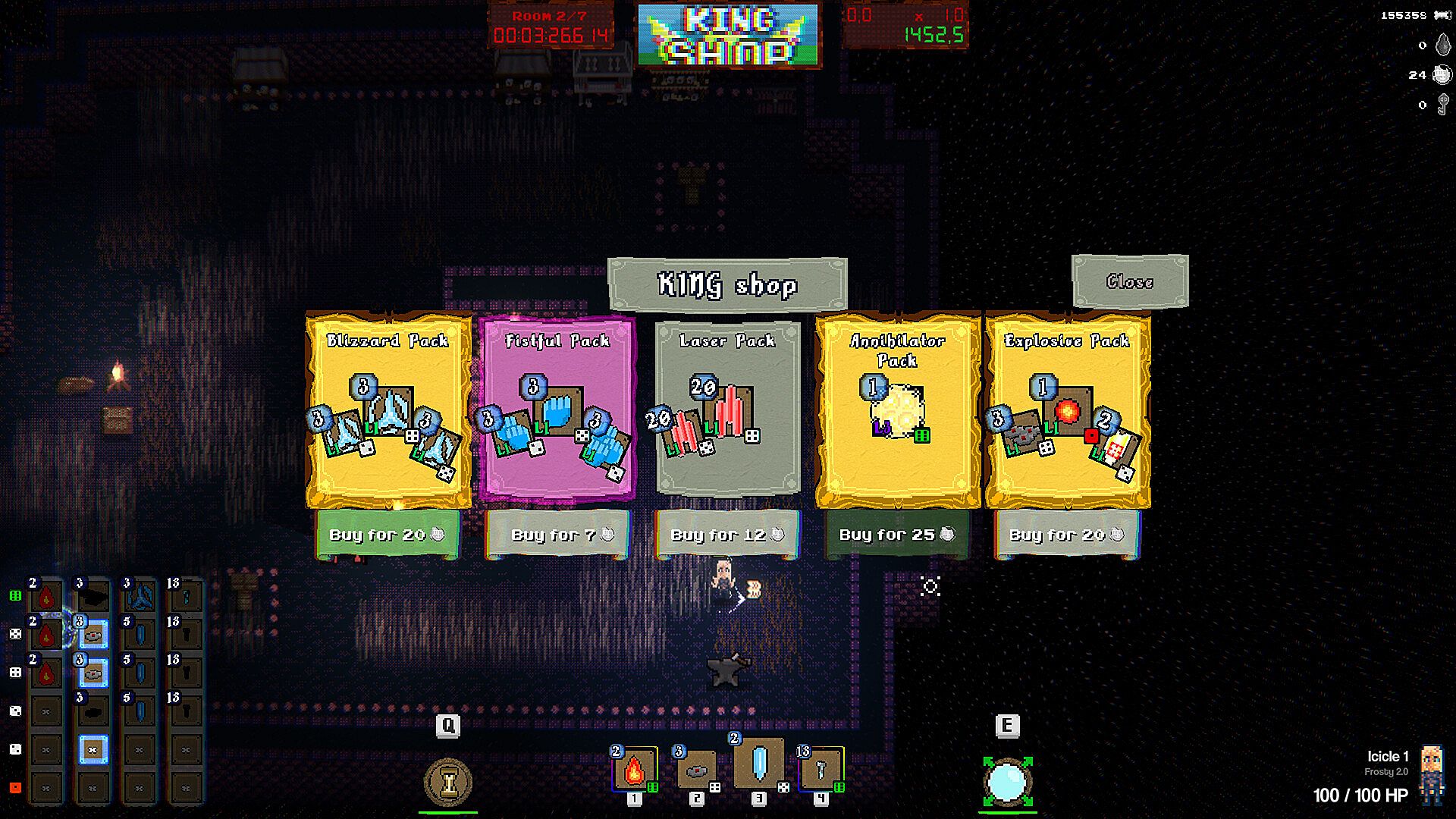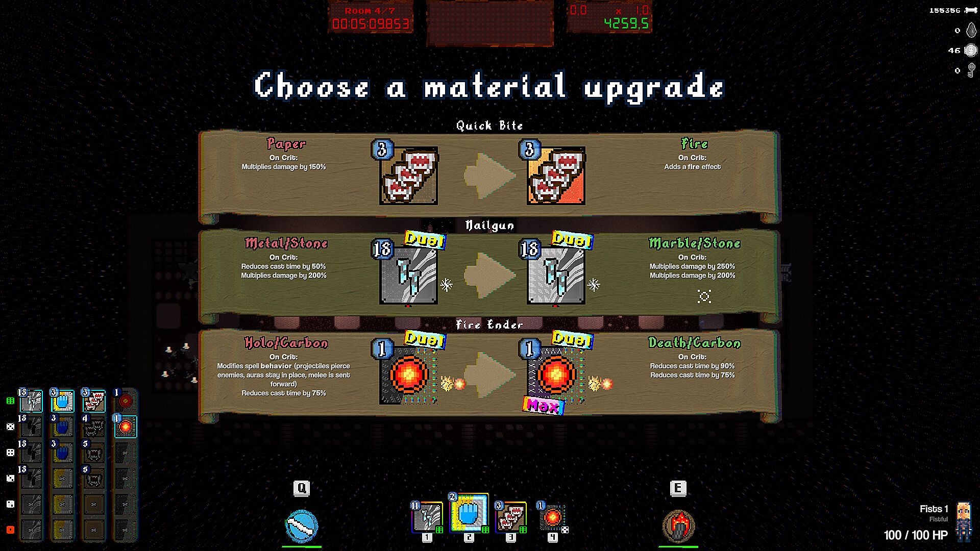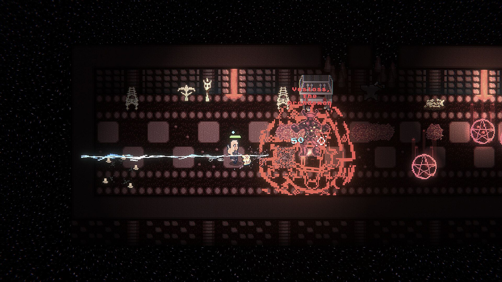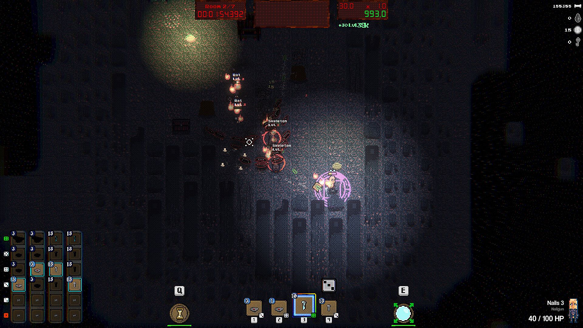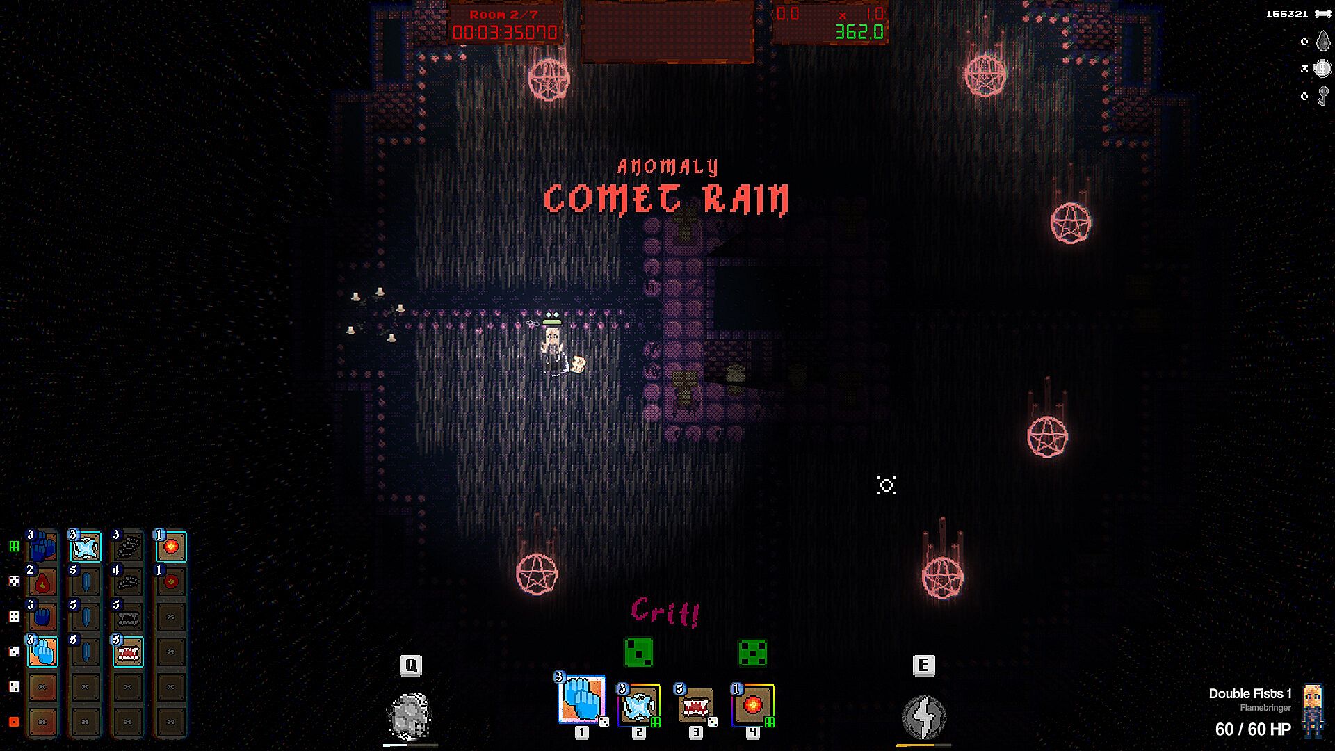 Select from a wide variety of dice and change how they behave on Critical rolls. Go for damage, hit effects, combos or even pure chaos. Spells vary wildly in stats, effects, and even their physics! Throughout the run collect rare modifiers that will further influence the spell's behavior. Combine all those choices to annihilate your enemies!