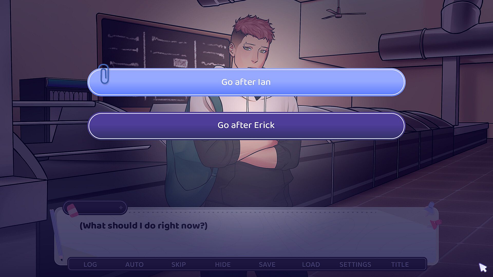 Room 304 is a short boys’ love visual novel set in a quiet dormitory. You’ll meet Ian, the timid boy with brown hair, and Eric, his more confident roommate. Over four days, everyday moments slowly reveal their fears, hopes, and hidden feelings. The room carries a rumor of a curse, blurring the line between comfort and unease.