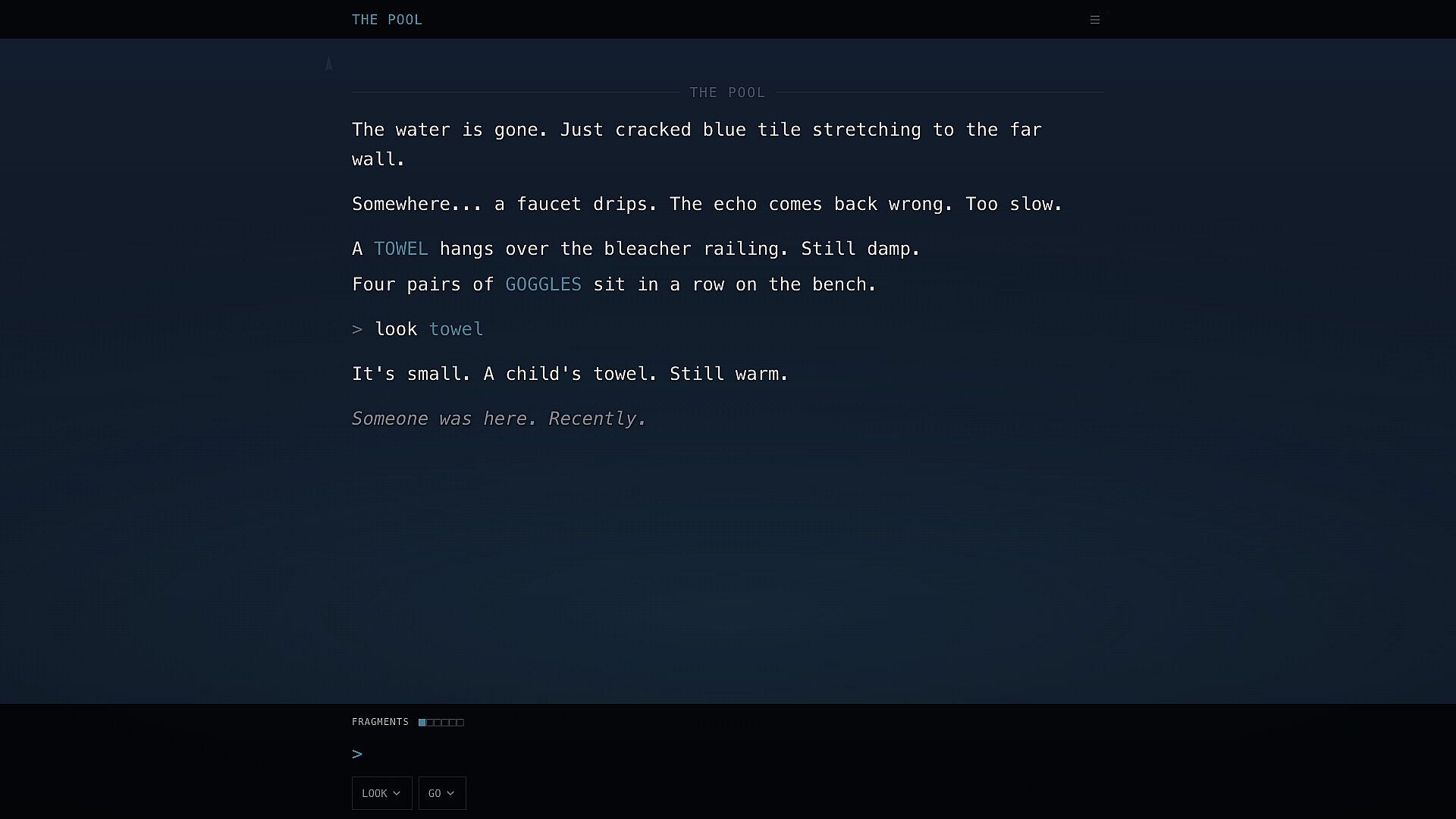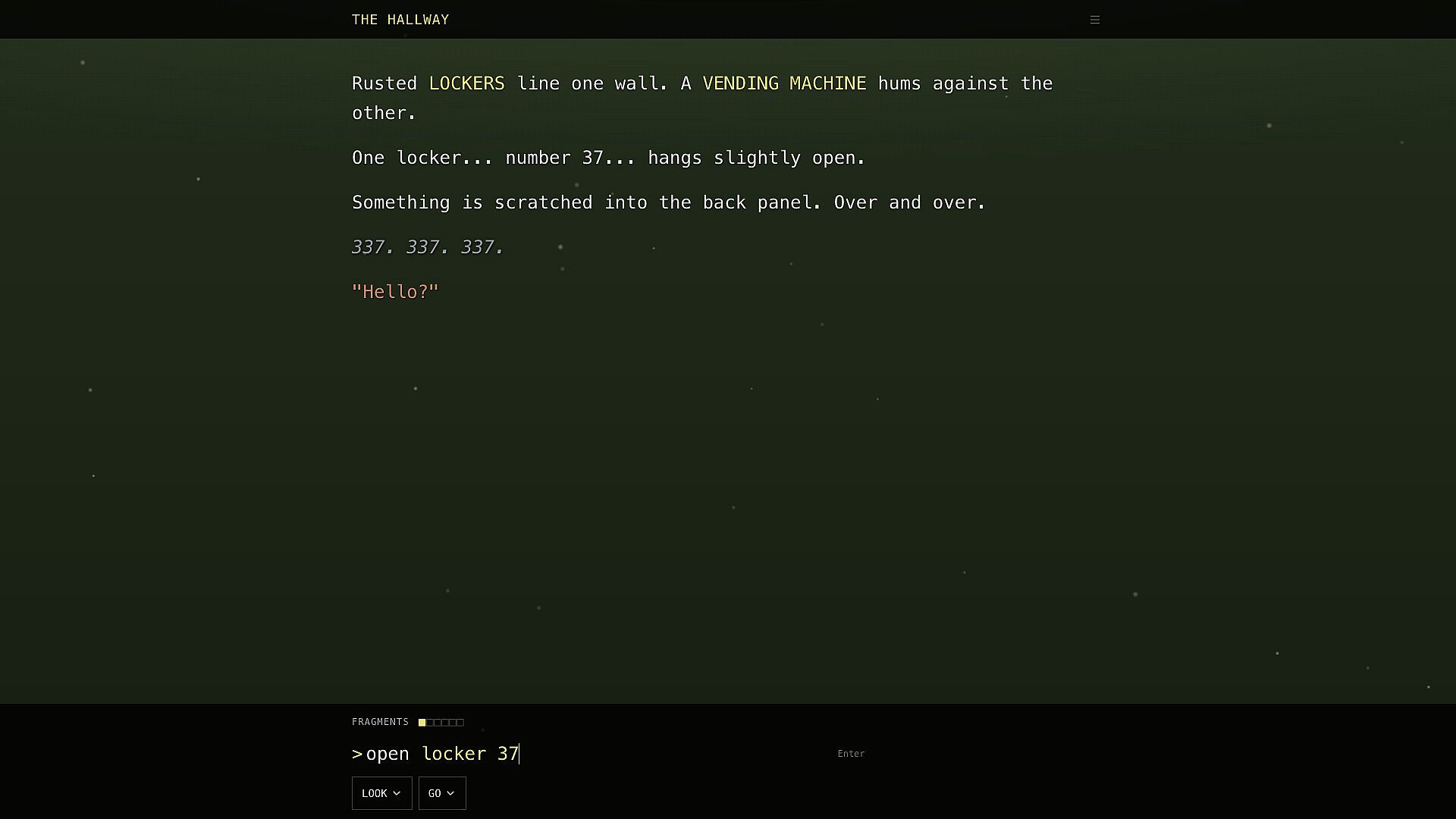 Room 337 is a narrative experience about memory, fatherhood, and the weight of being present. Wander through liminal spaces... empty hallways, abandoned malls, pools that echo with absence... where fragments of your past call you forward.